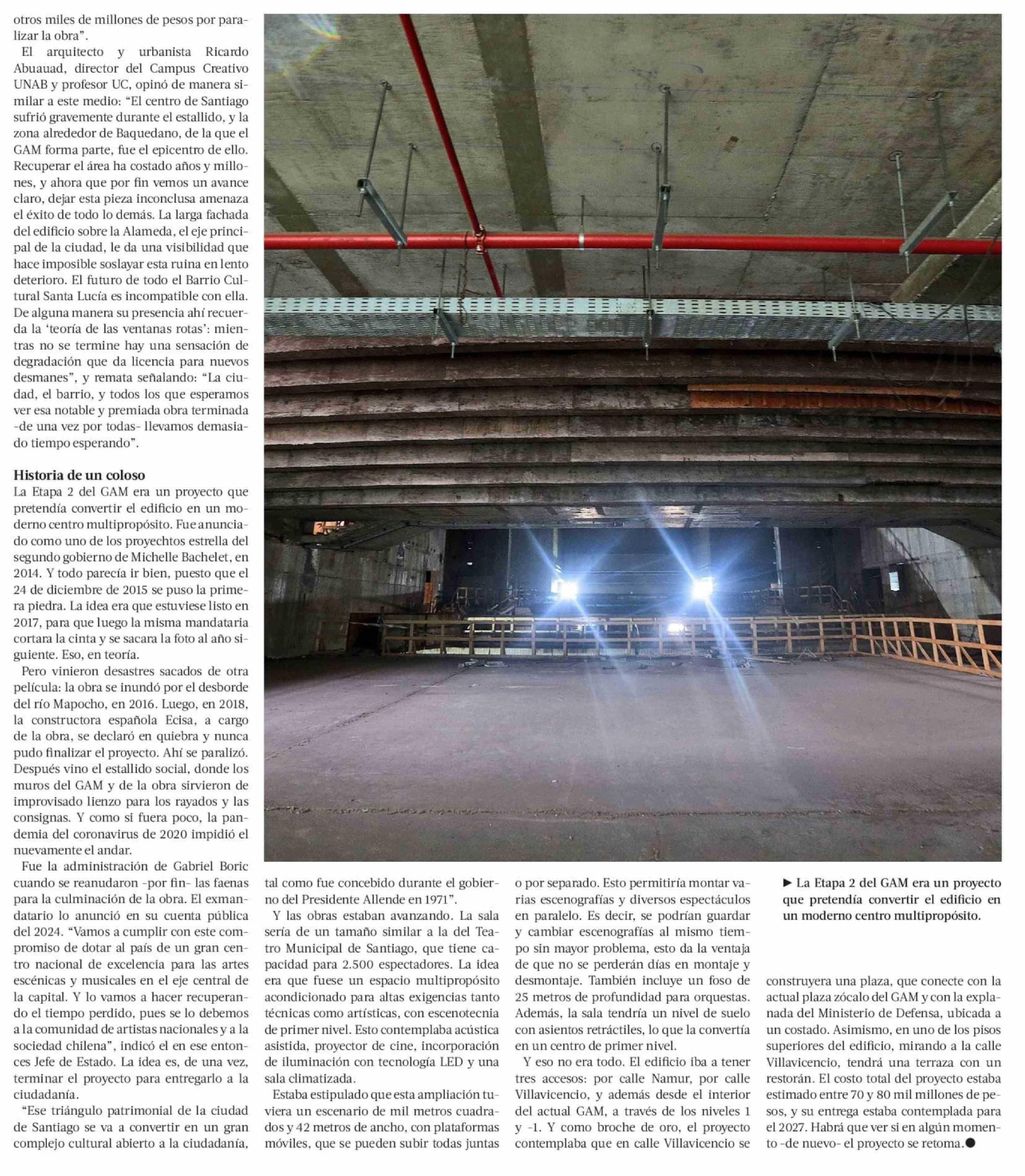 El GAM inconcluso: el difícil derrotero de un proyecto postergado por años y el lamento del mundo cultural 21-04-2026 La Tercera |