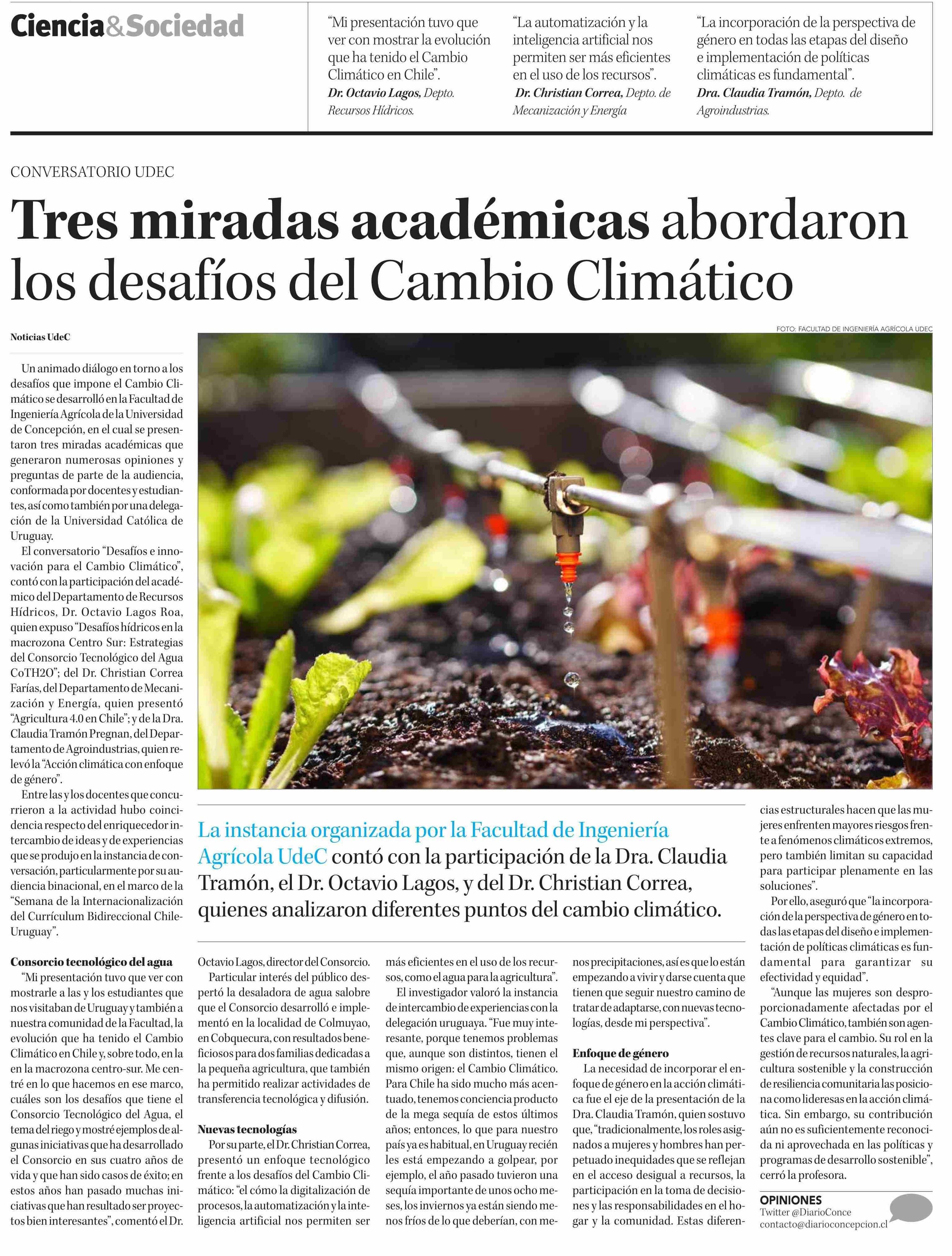 Tres miradas académicas abordaron los desafíos del Cambio Climático 24-03-2025 Diario Concepción |