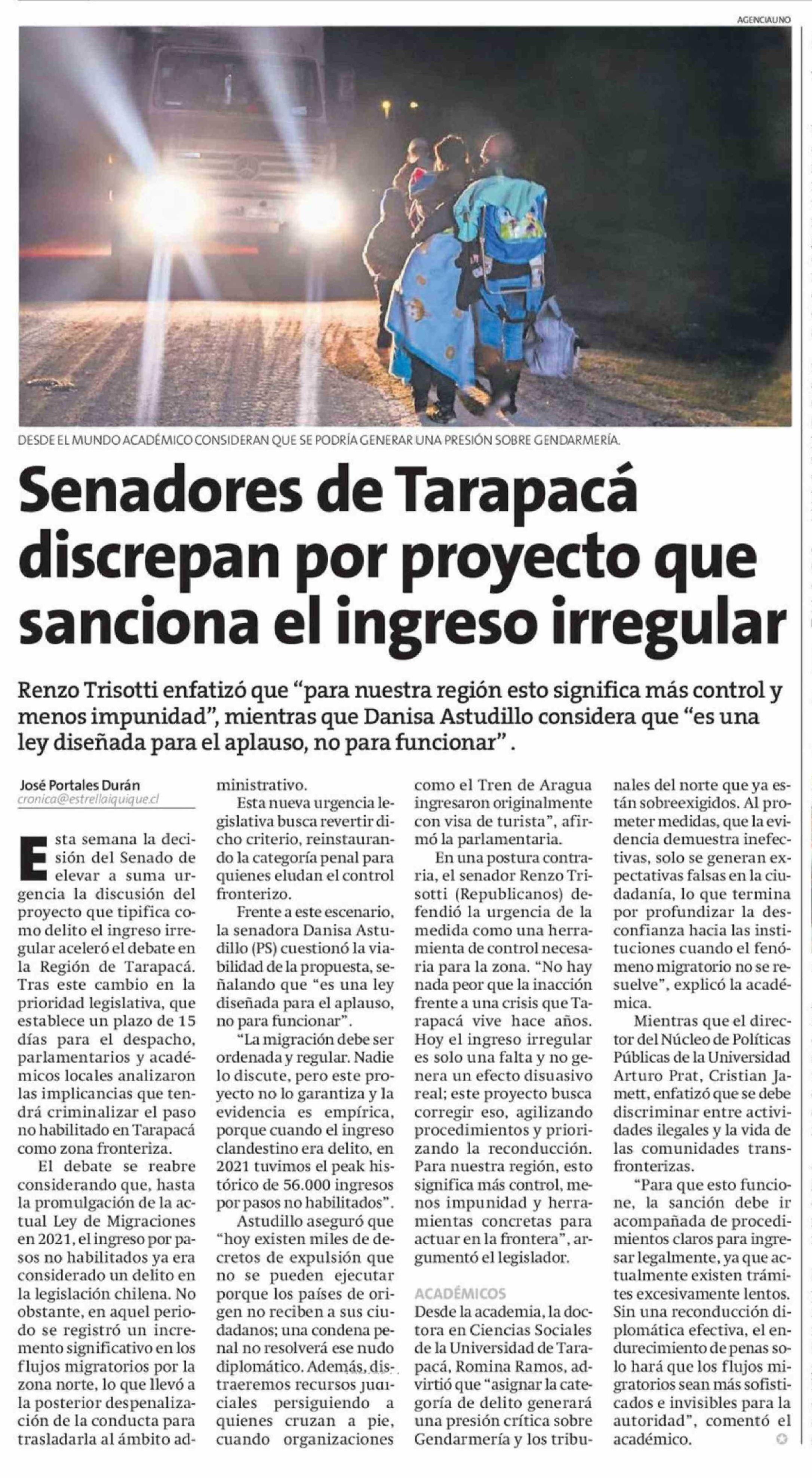 Senadores de Tarapacá discrepan por proyecto que sanciona el ingreso irregular 26-04-2026 La Estrella de Iquique |