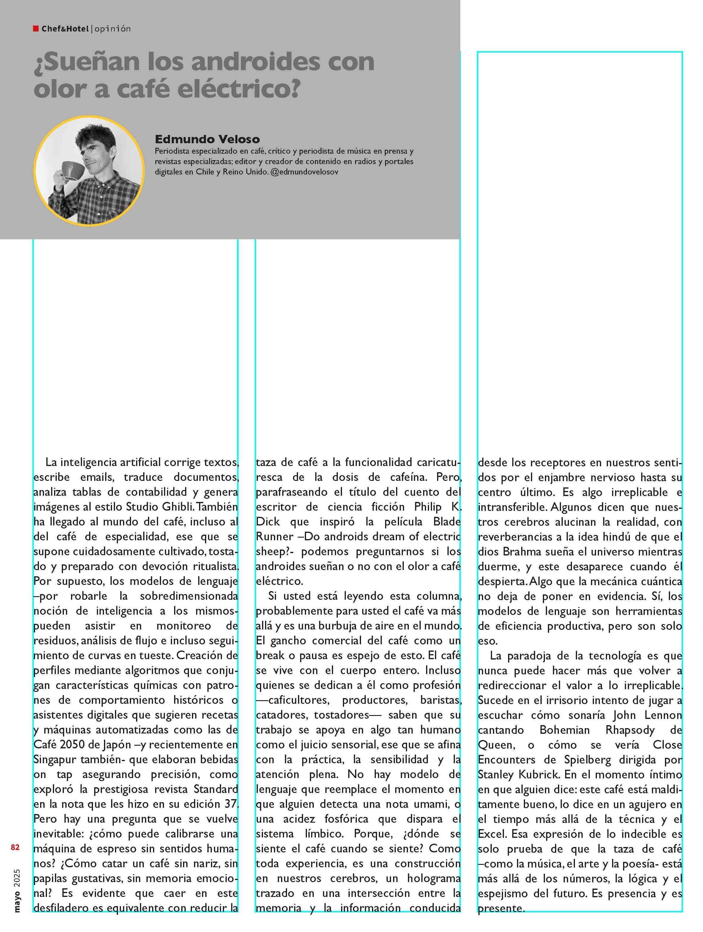 | Título: | COLUMNAS DE OPINIÓN: Periodista especializado en café, crítico y periodista de música en prensa y revistas especializadas. editor y creador de contenido en radios y portales digitales en Chile y Reino Unido. Medmundovelosov |