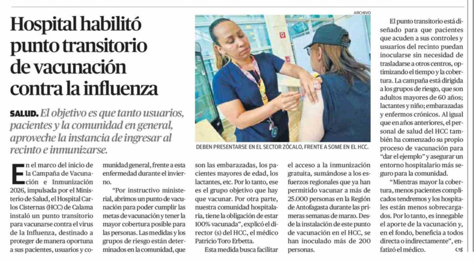 Título: Hospital habilitó punto transitorio de vacunación contra la influenza