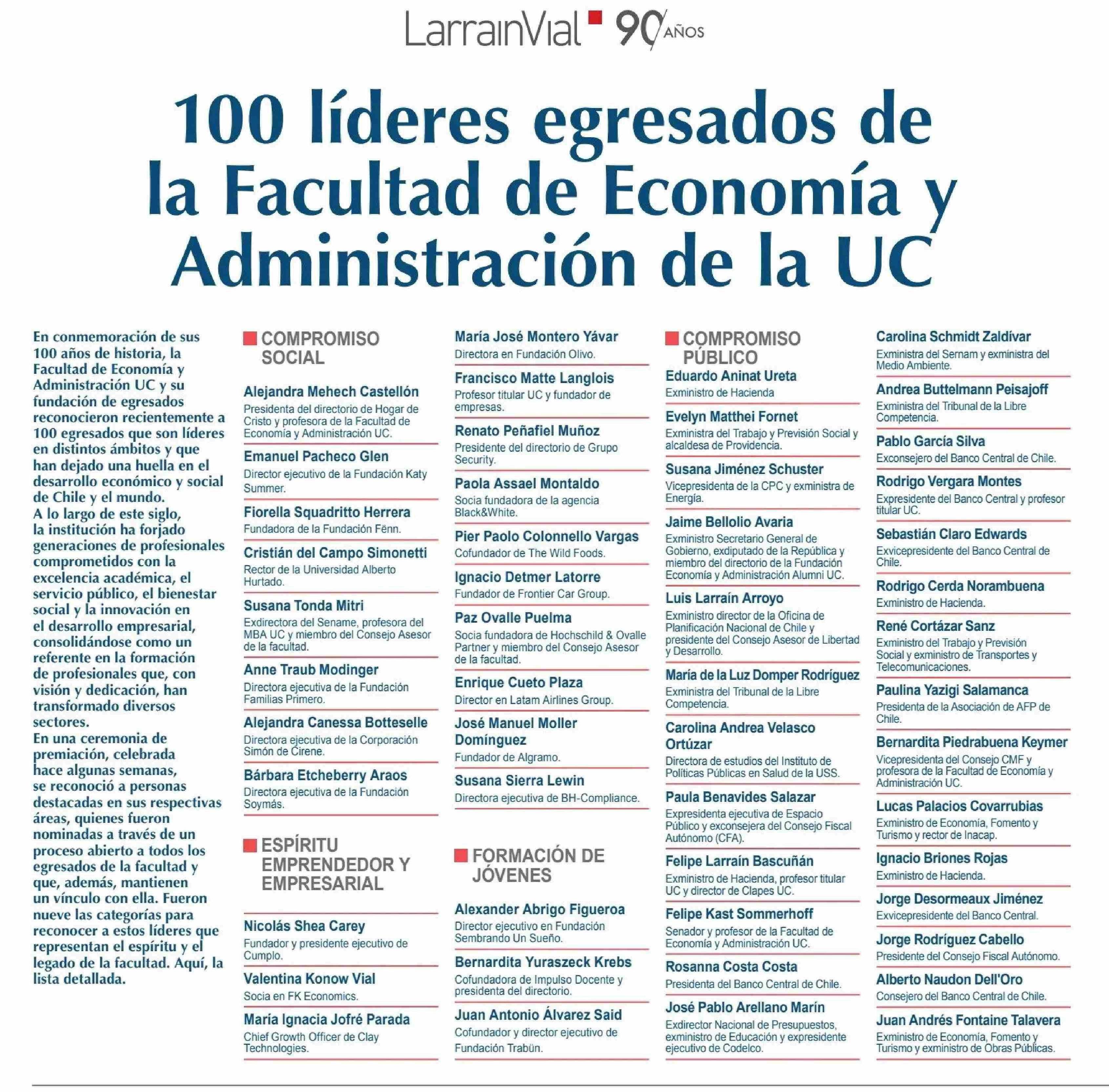 100 líderes egresados de la Facultad de Economía y Administración de la UC 28-09-2024 Diario Financiero |