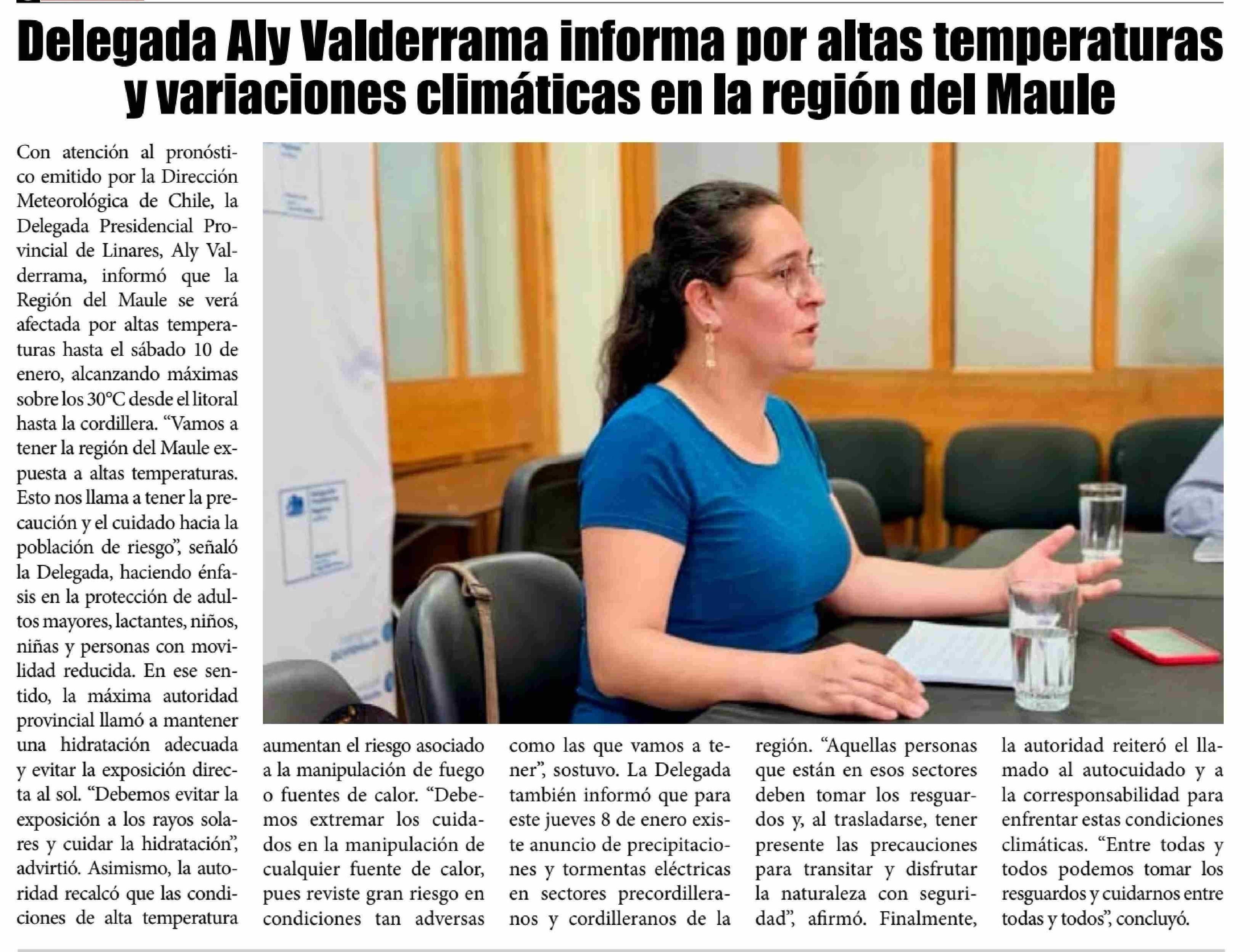 Título: Delegada Aly Valderrama informa por altas temperaturas y variaciones climáticas en la región del Maule