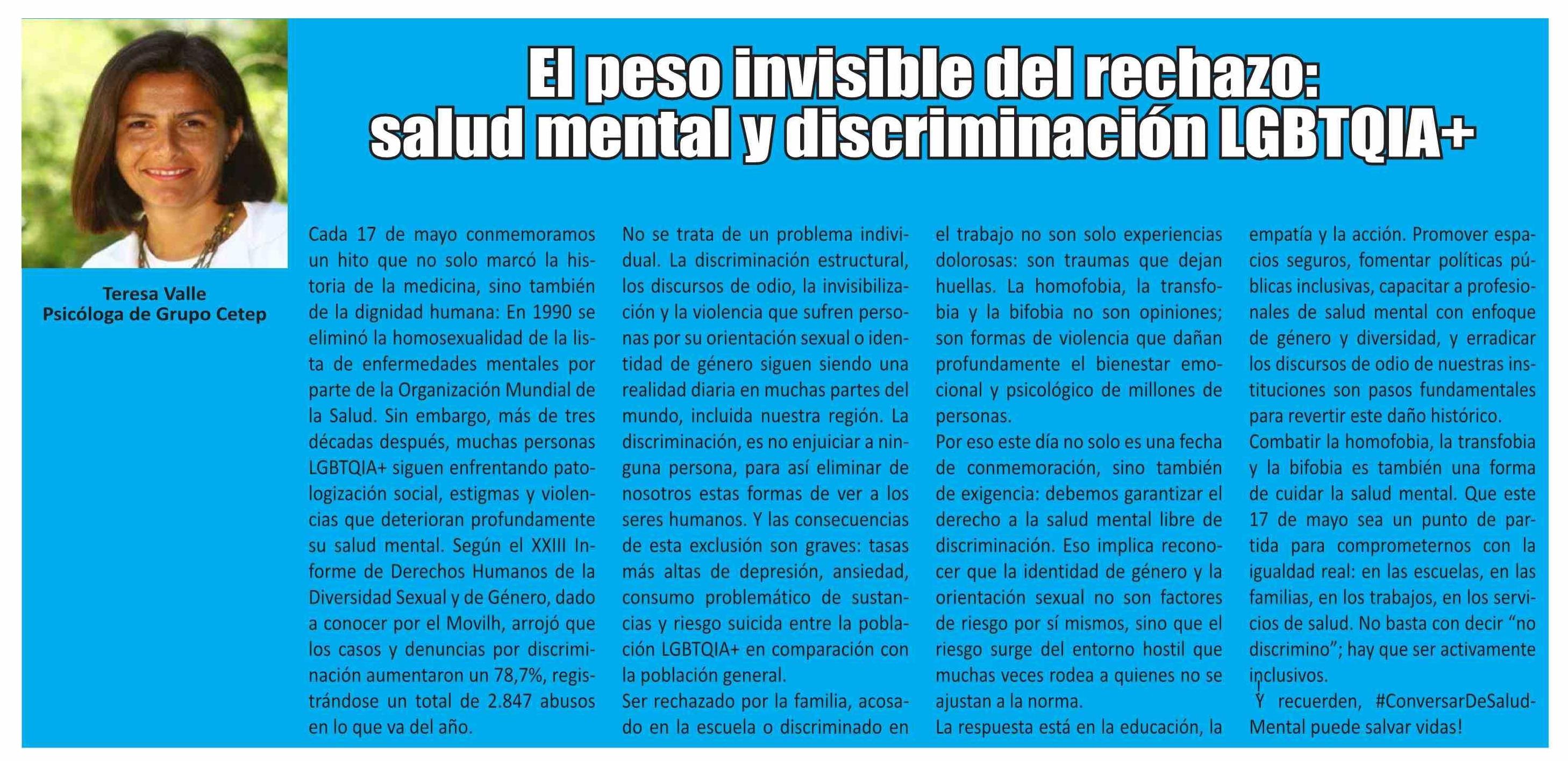 El peso invisible del rechazo: El peso invisible del rechazo: salud mental y discriminación LGBTQIA+ salud mental y discriminación LGBTQIA+