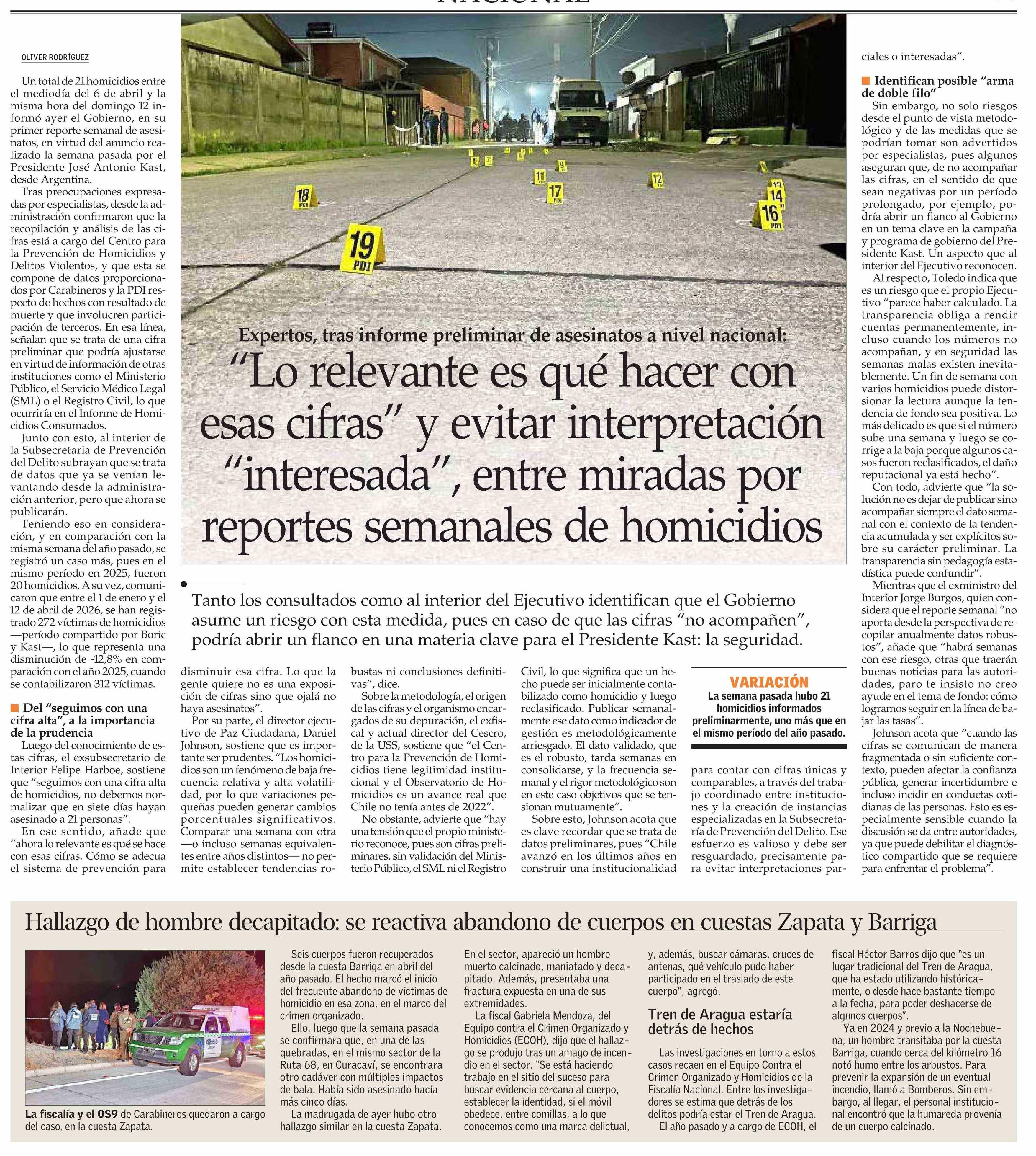 Título: “Lo relevante es qué hacer con esas cifras” y evitar interpretación “interesada”, entre miradas por reportes semanales de homicidios