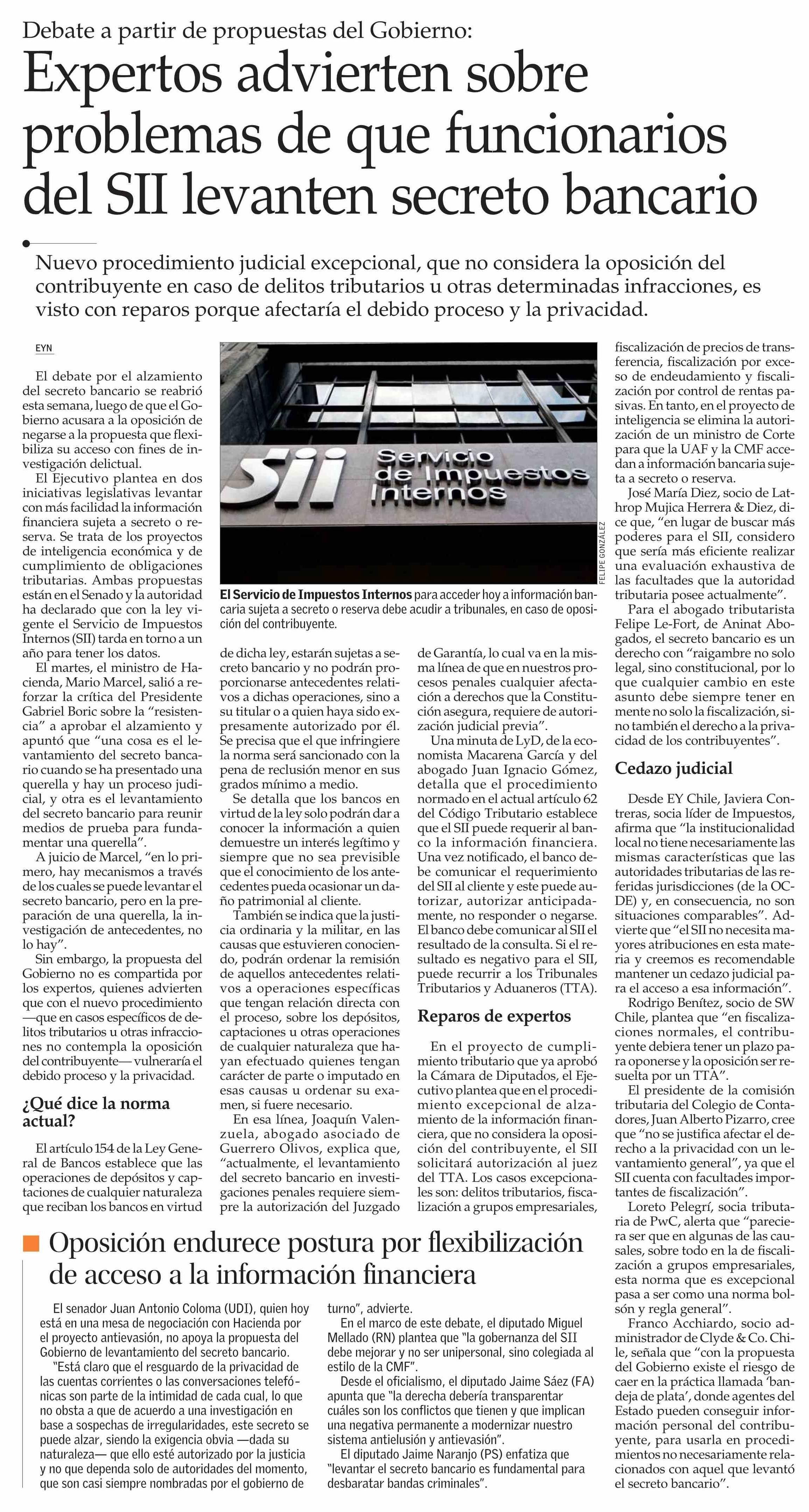 | Título: | Expertos advierten sobre problemas de que funcionarios del SII levanten secreto bancario |