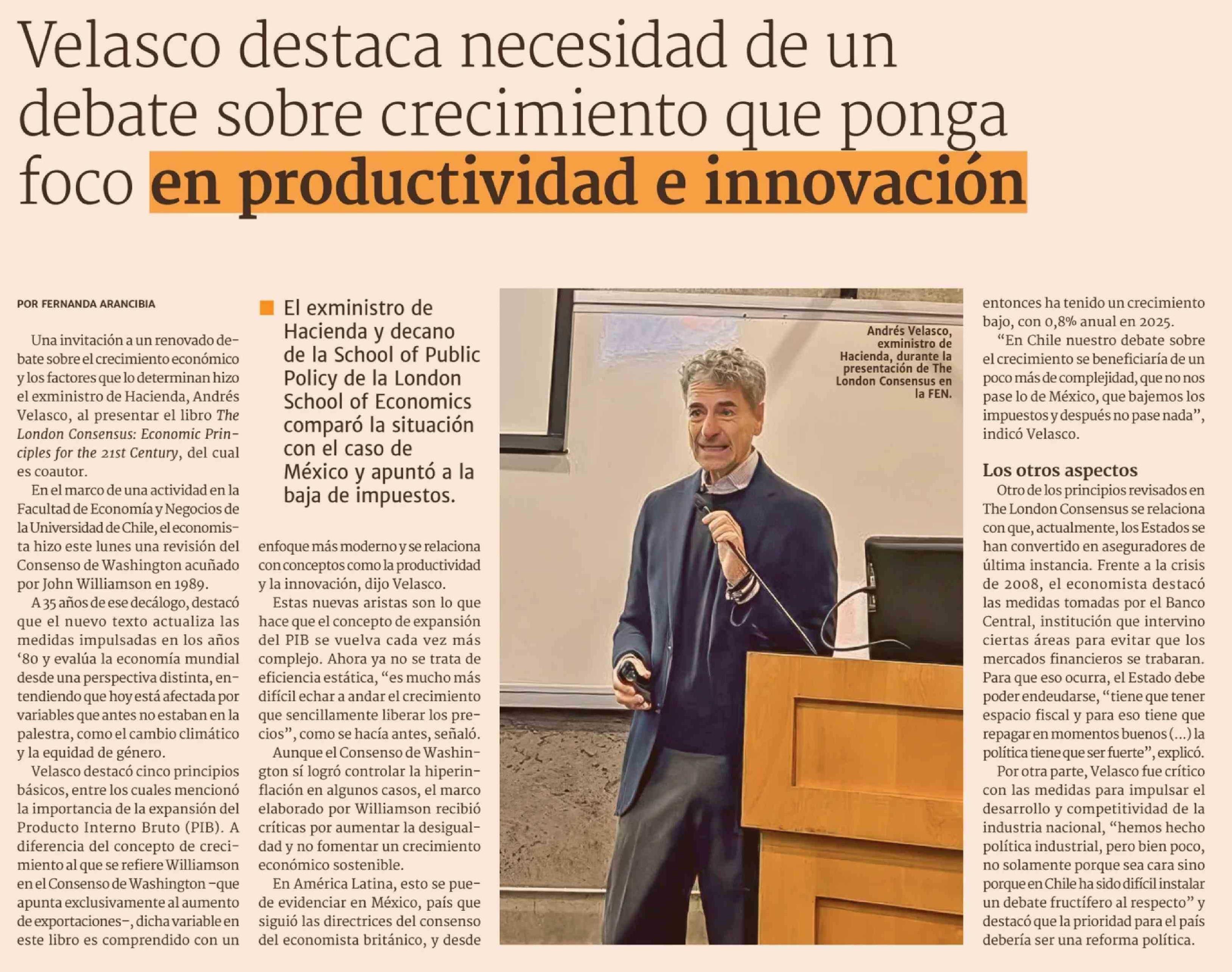 Velasco destaca necesidad de un debate sobre crecimiento que ponga foco en productividad e innovación 21-04-2026 Diario Financiero |