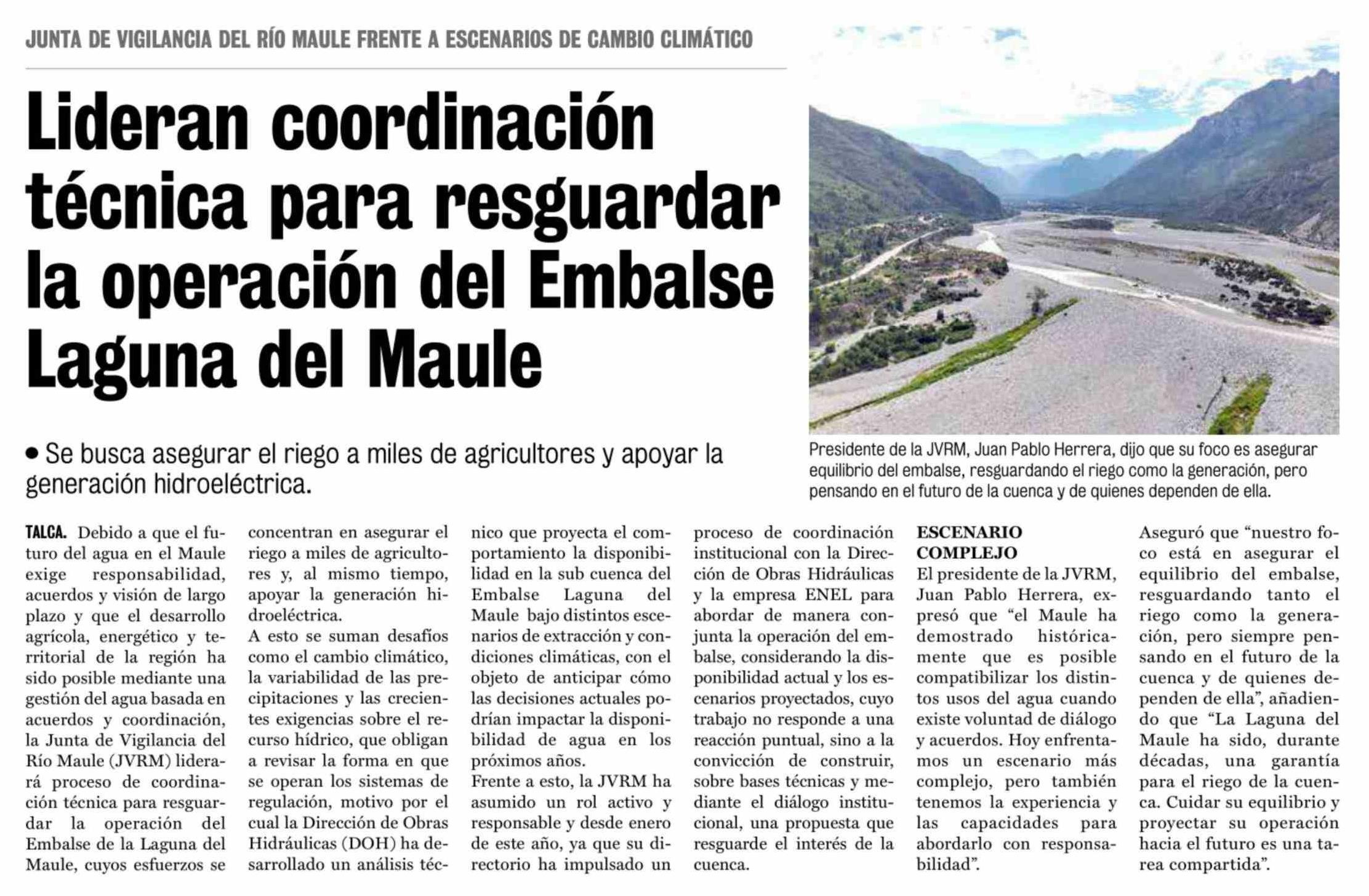 Título: Lideran coordinación técnica para resguardar la operación del Embalse Laguna del Maule