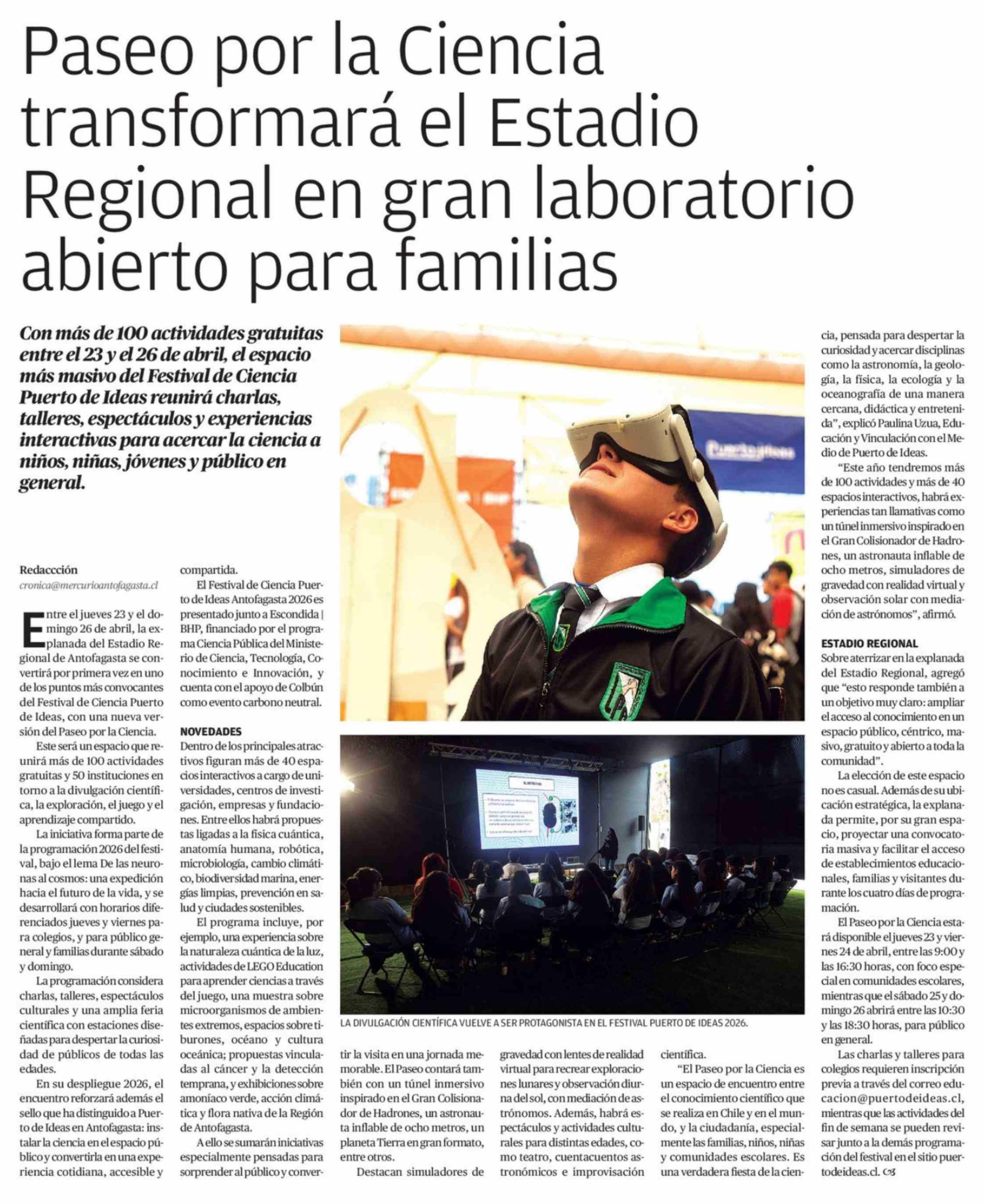 Título: Paseo por la Ciencia transformará el Estadio Regional en gran laboratorio abierto para familias