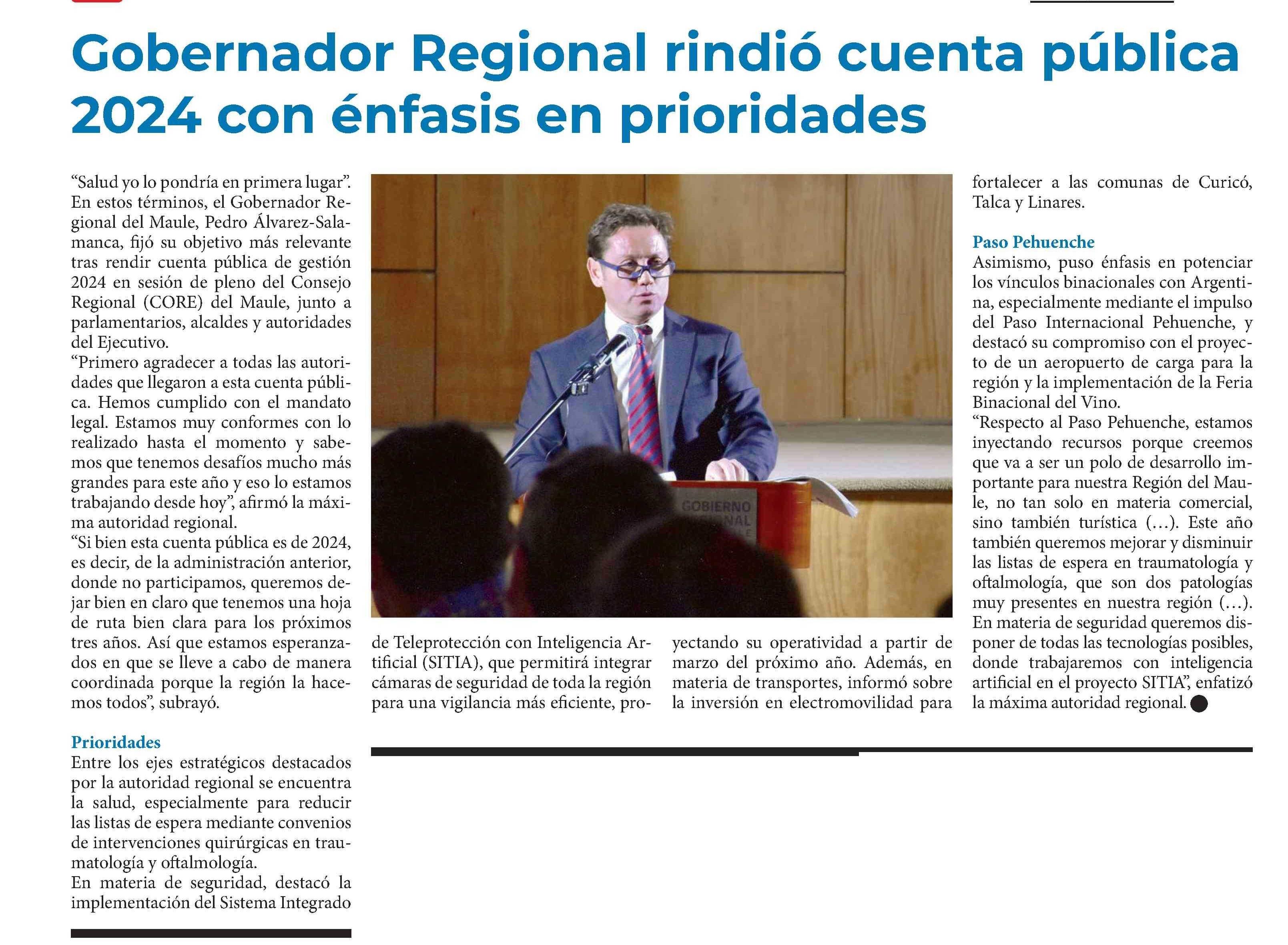 Gobernador Regional rindió cuenta pública 2024 con énfasis en prioridades 02-06-2025 Diario Talca |