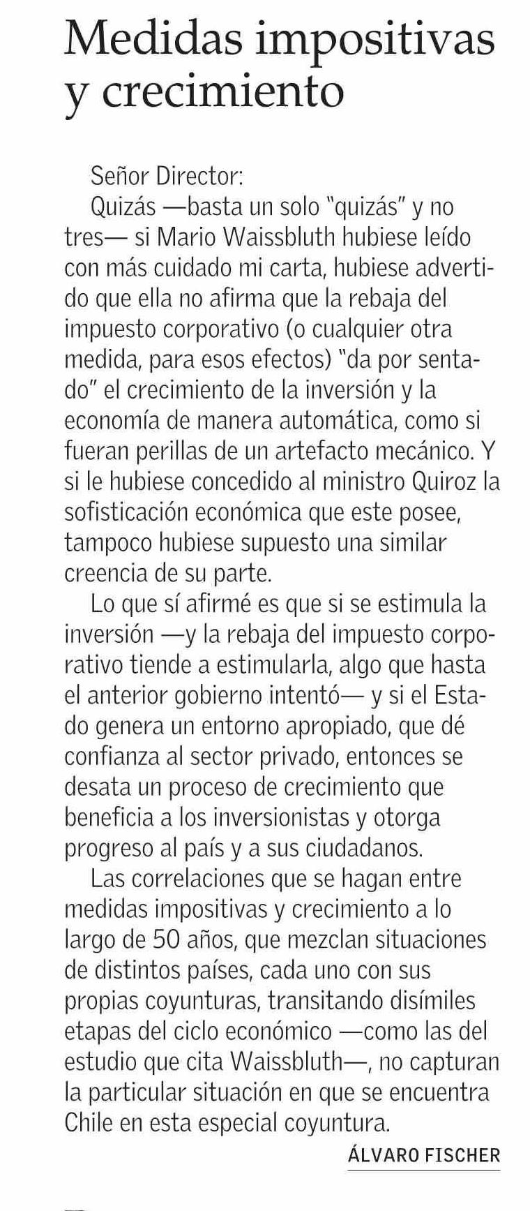 Título: CARTAS: Medidas impositivas y crecimiento