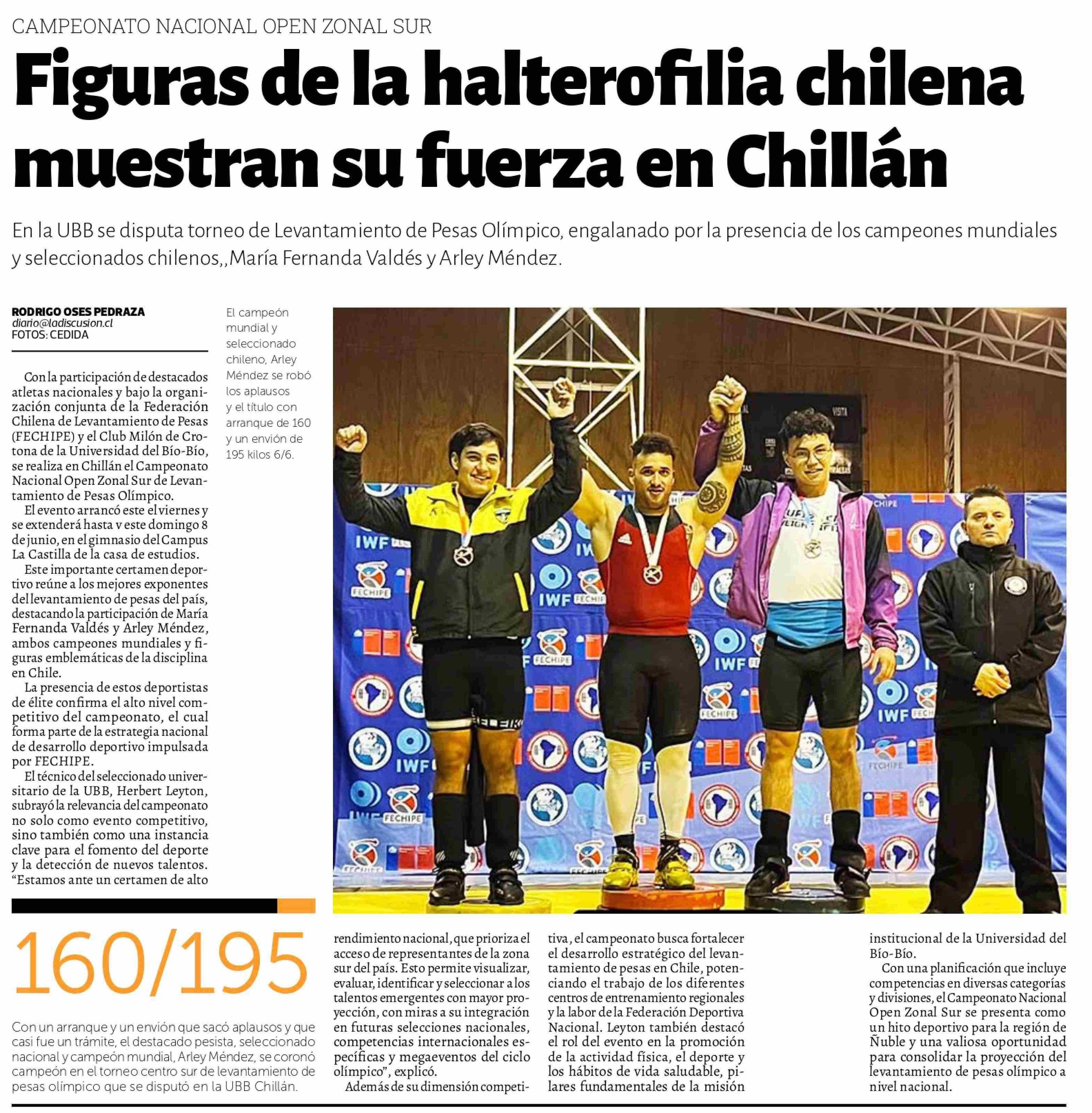 Título: Figuras de la halterofilia chilena muestran su fuerza en Chillán