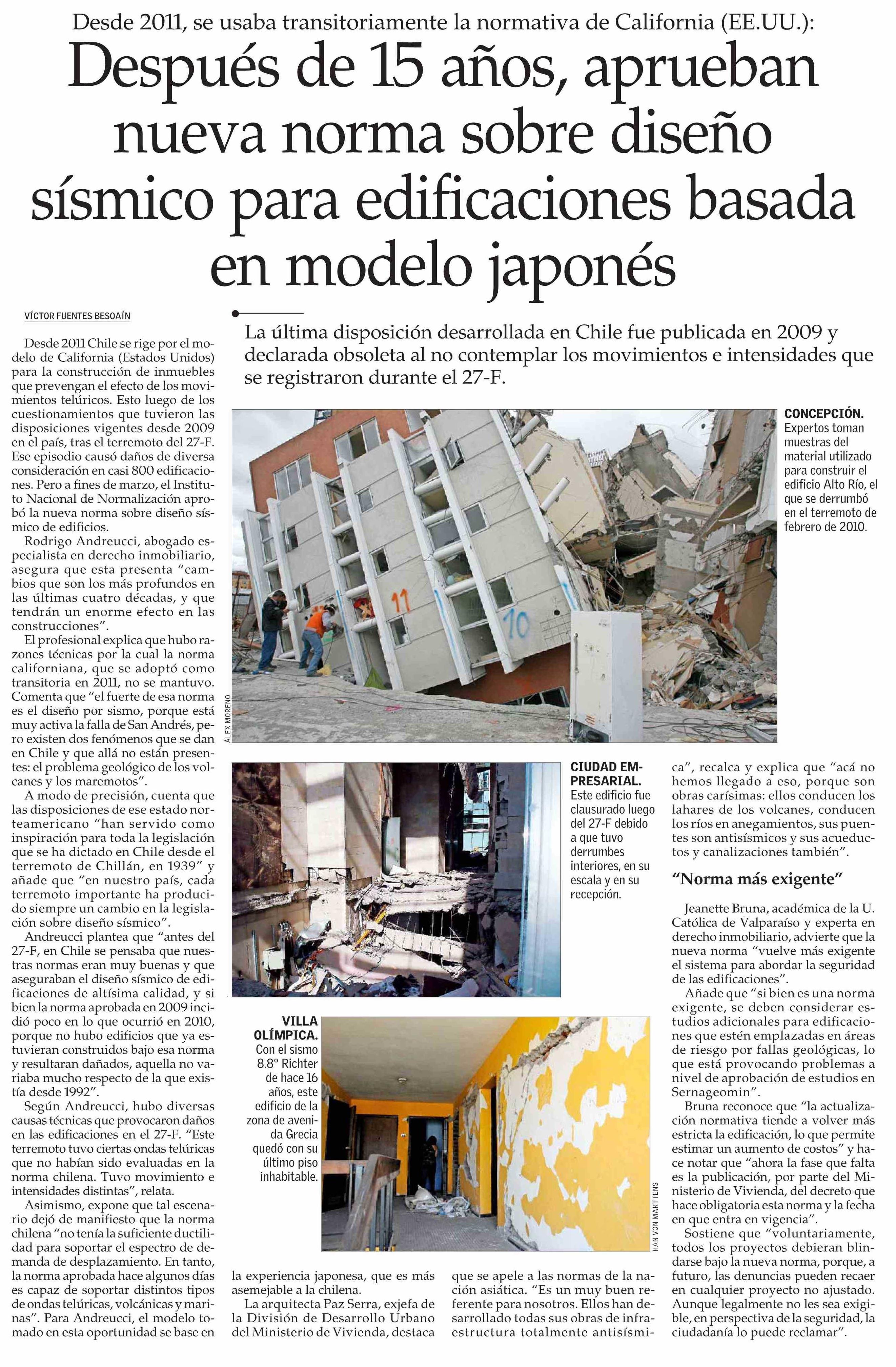 Título: Después de 15 años, aprueban nueva norma sobre diseño sísmico para edificaciones basada en modelo japonés