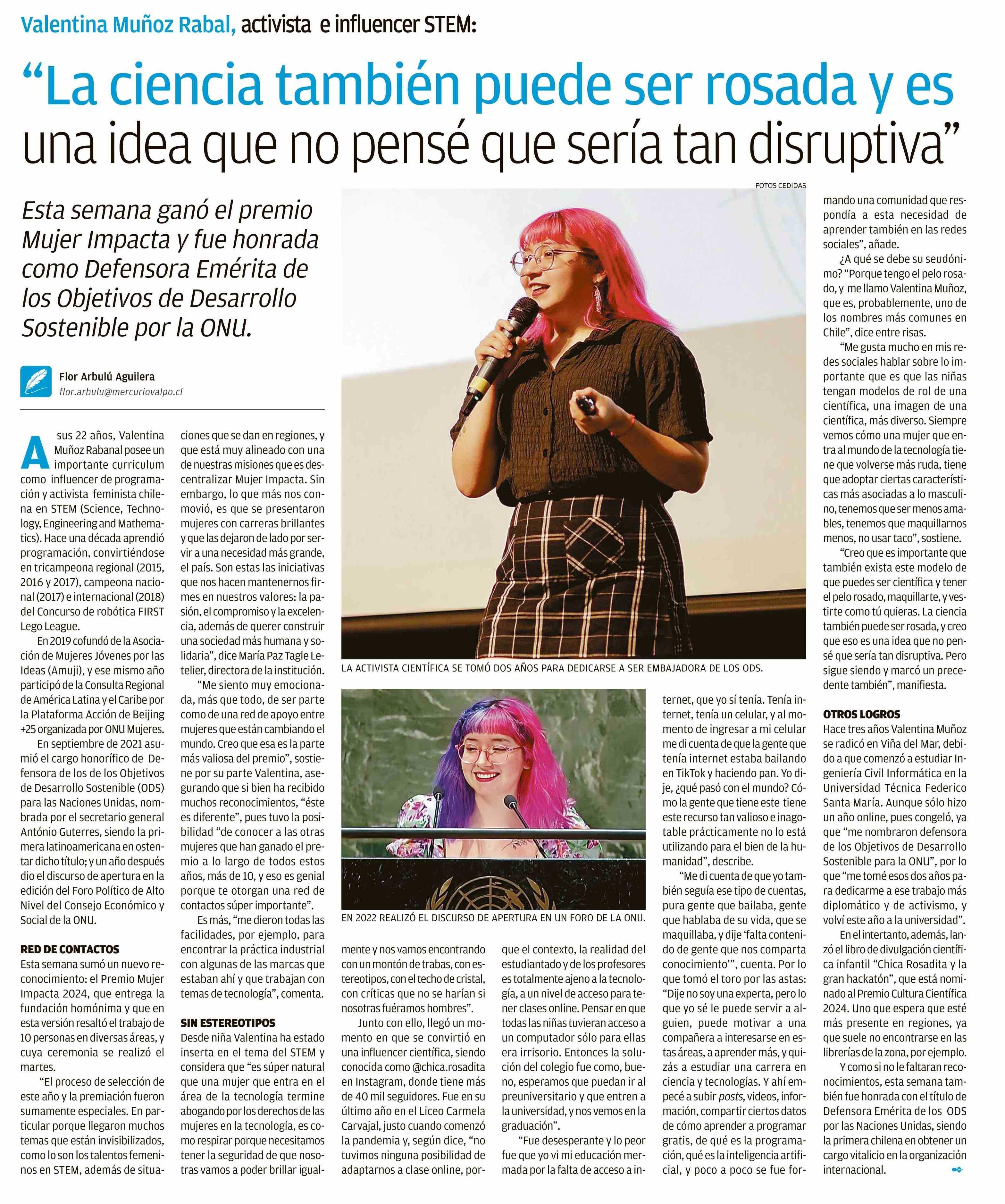“La ciencia también puede ser rosada y es una idea que no pense que seria tan disruptiva” 01-09-2024 El Mercurio de Valparaíso |