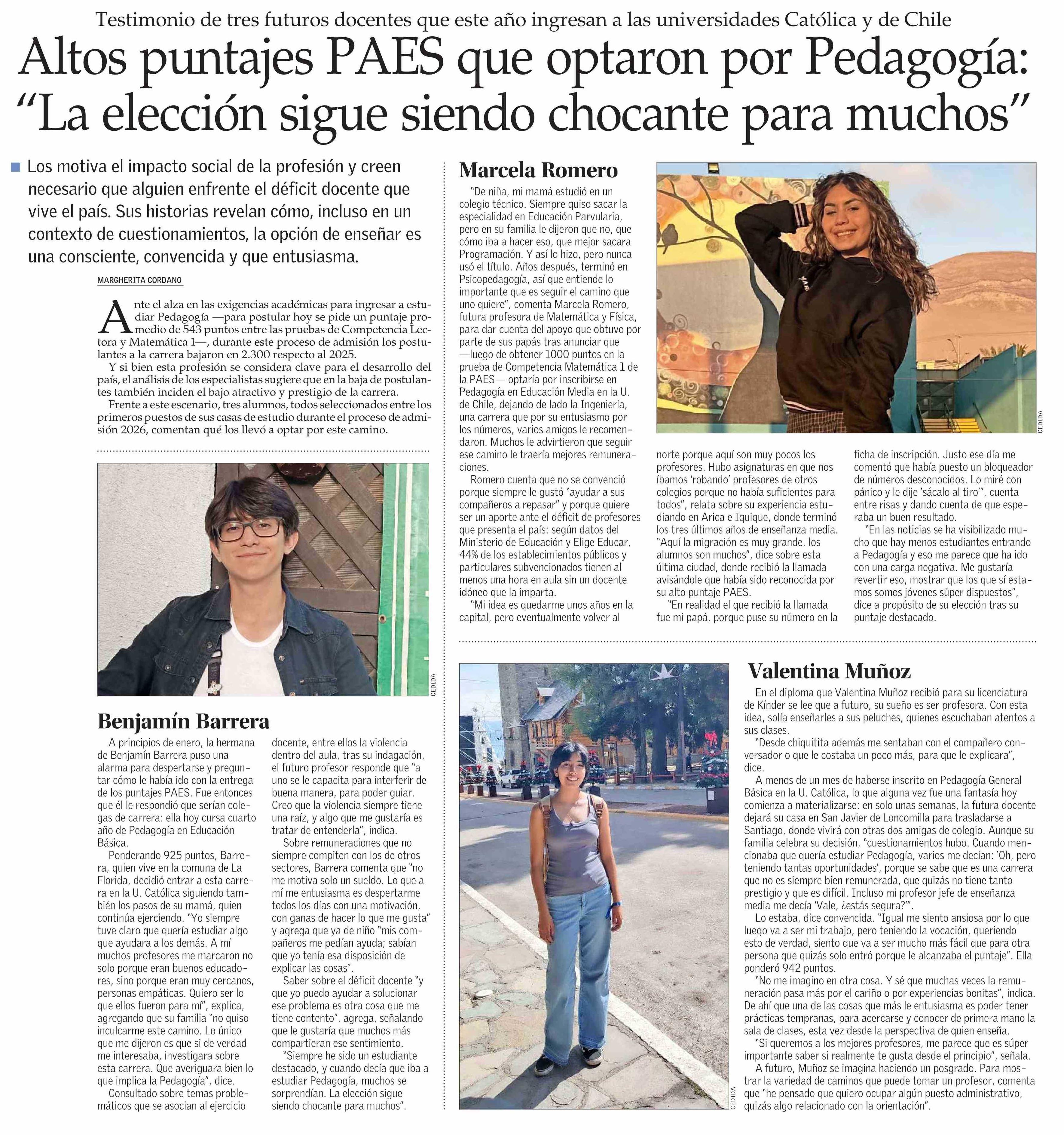 Título: Altos puntajes PAES que optaron por Pedagogía: “La elección sigue siendo chocante para muchos”