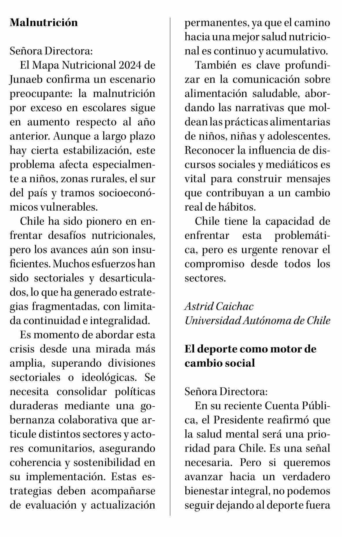 CARTAS: Mal nutrición 07-06-2025 Diario Concepción |
