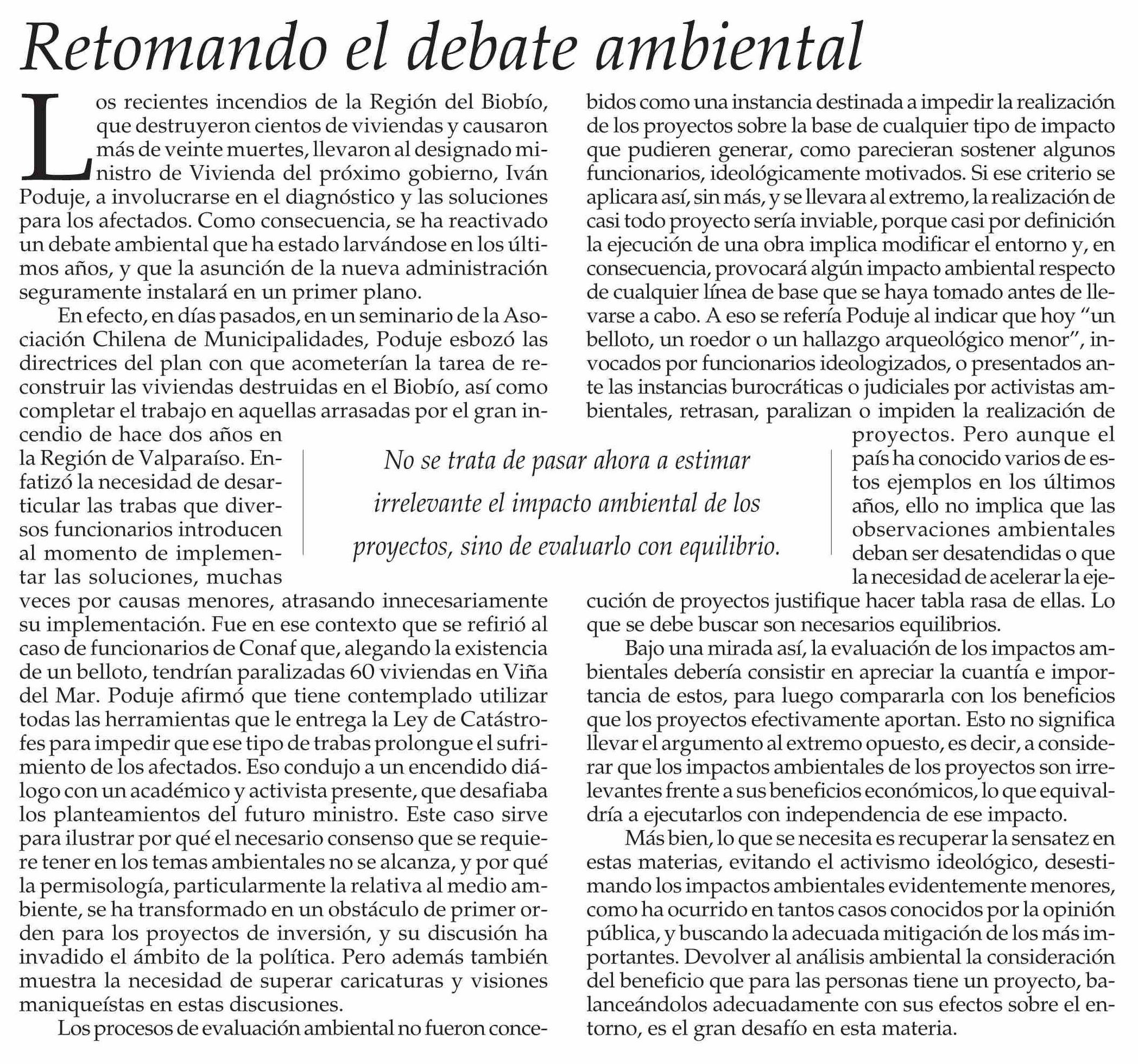 Editorial: Retomando el debate ambiental 05-02-2026 El Mercurio |