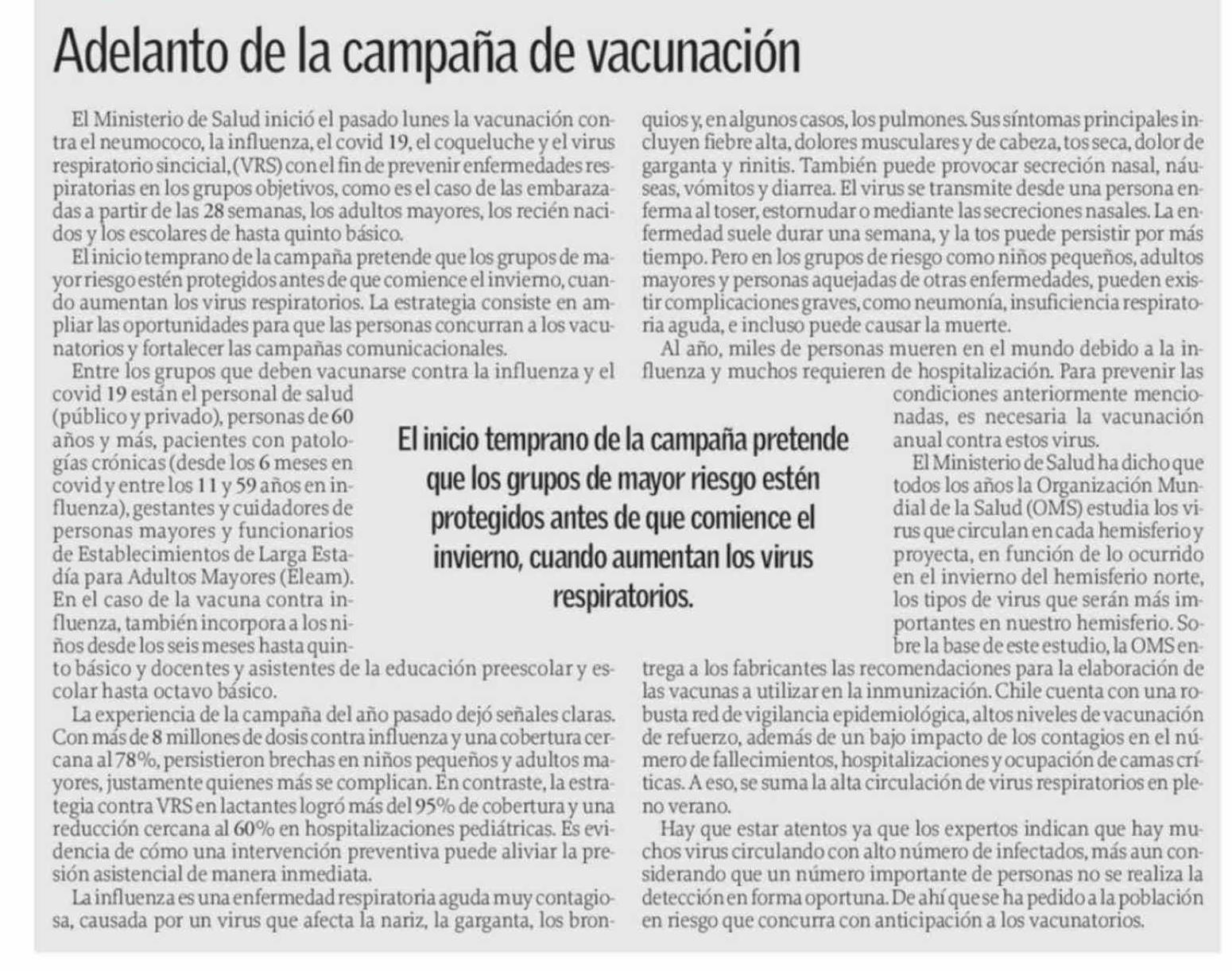 | Título: | EDITORIAL: Adelanto de la campaña de vacunación |