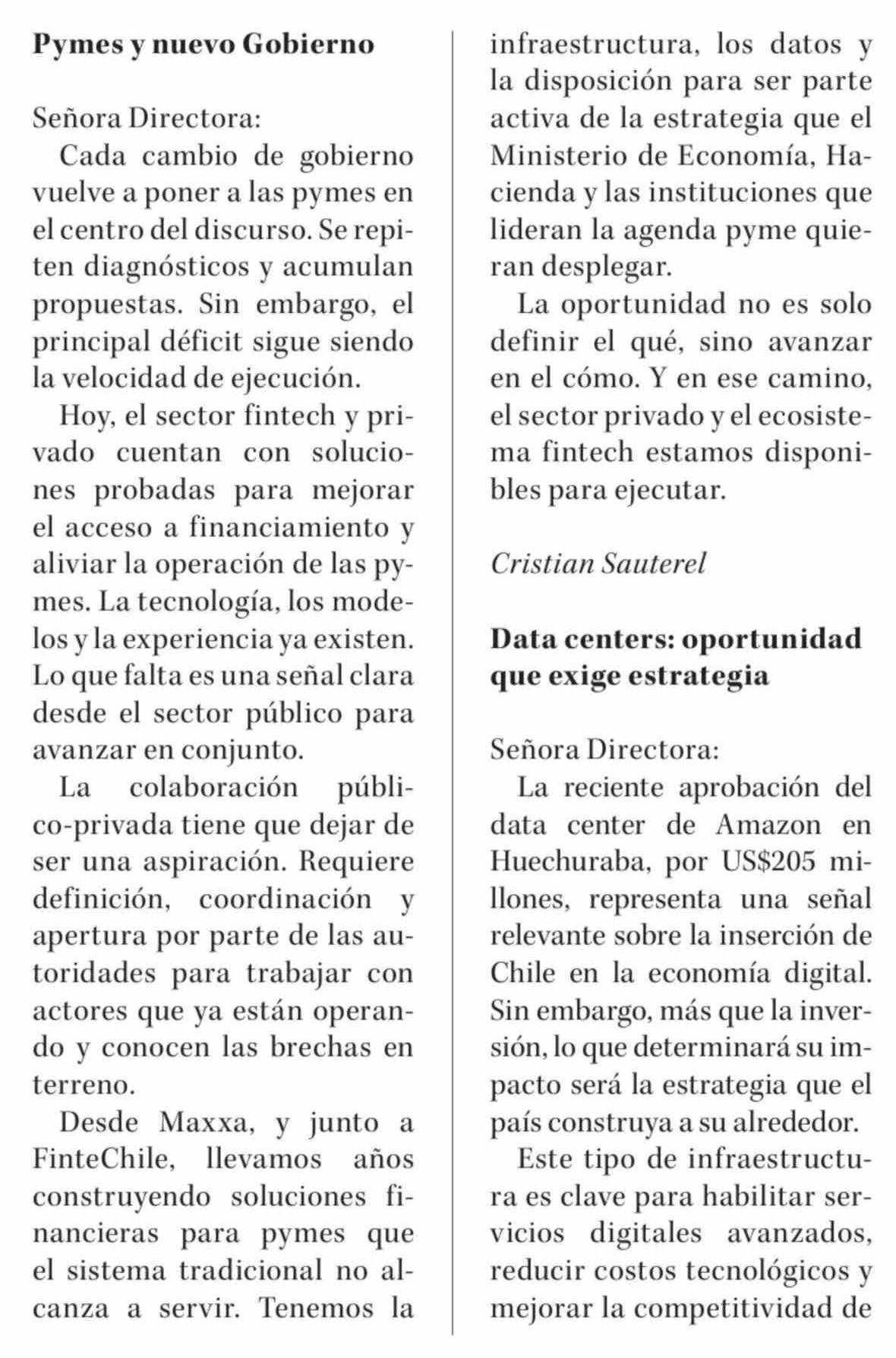 Cartas: Pymes y nuevo Gobierno 15-04-2026 Diario Concepción |