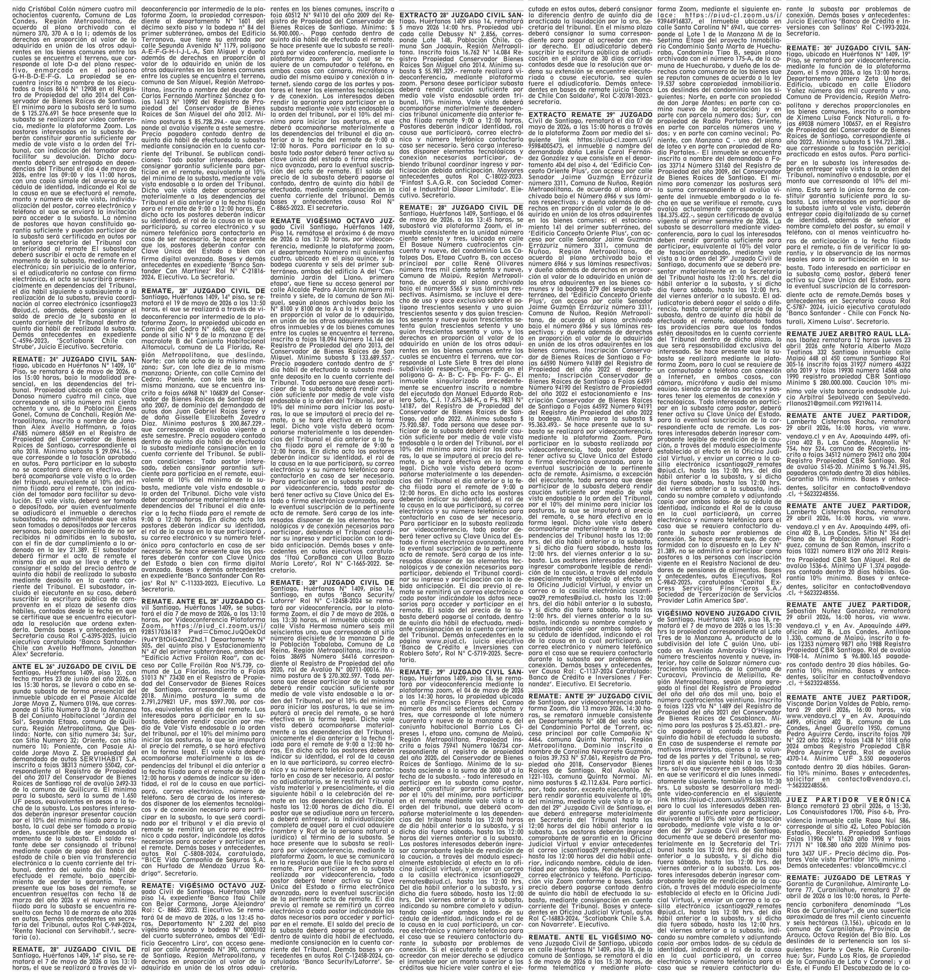 | Fecha: | 19-04-2026 | Sector: | Remates | Región: | Región Metropolitana de Santiago |