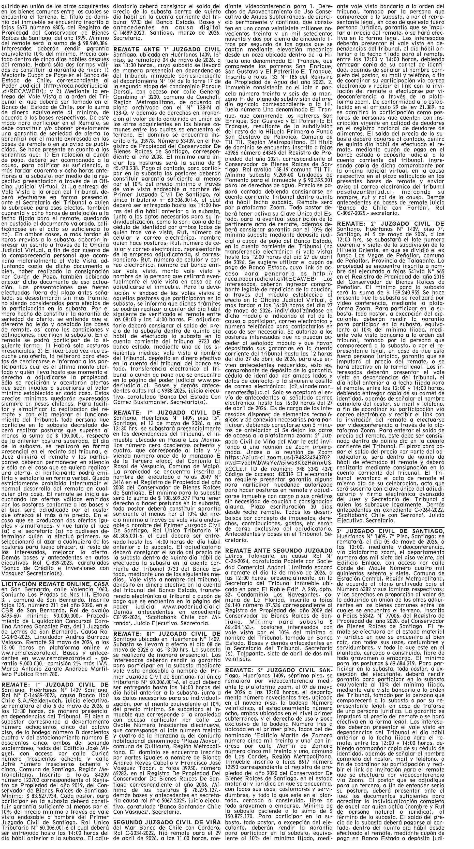 REMATES: 1616 REMATES DE PROPIEDADES 19-04-2026 El Mercurio |