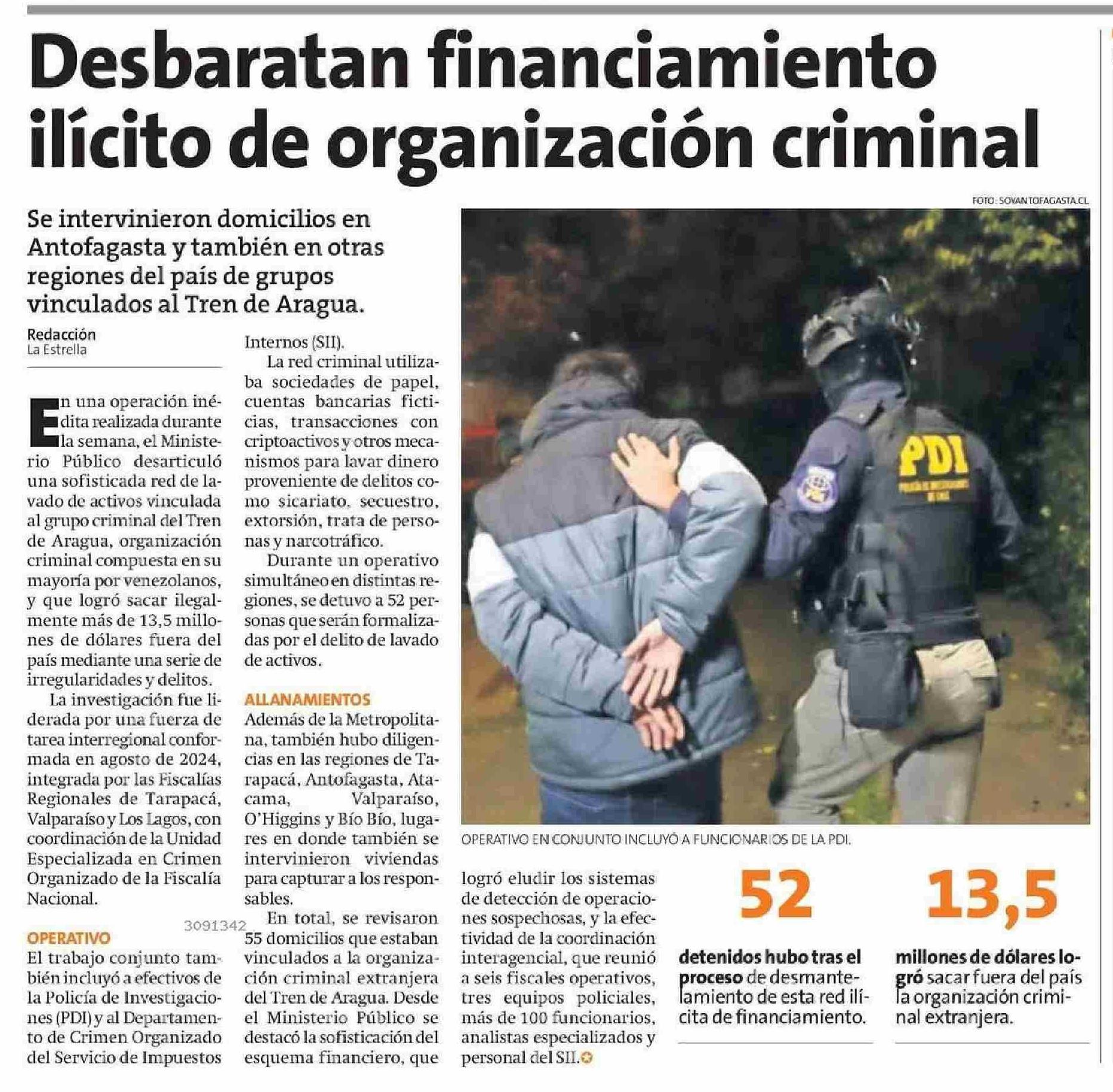 Desbaratan financiamiento ilícito de organización criminal 25-06-2025 La Estrella de Antofagasta |