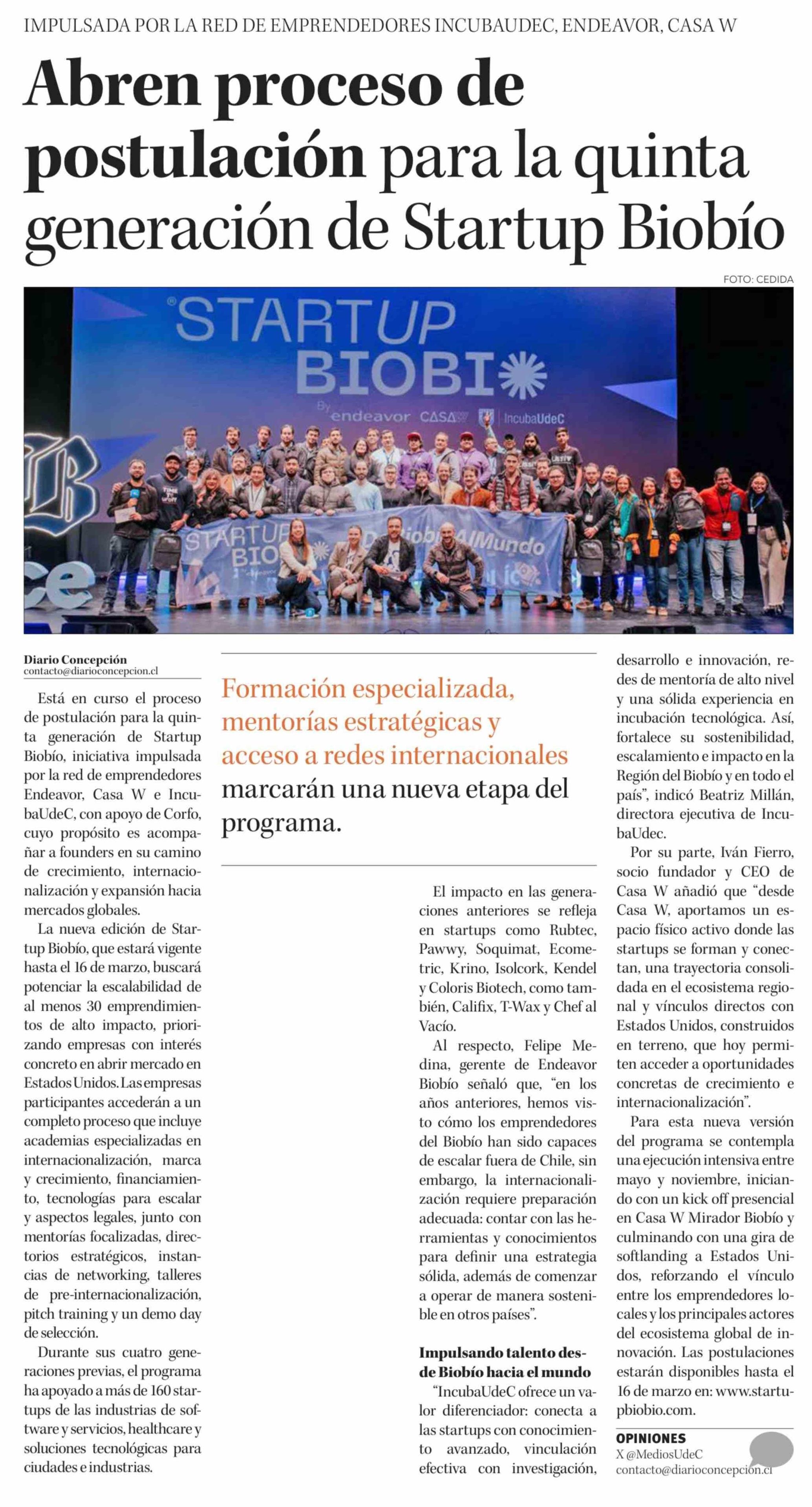 Título: Abren proceso de postulación para la quinta generación de Startup Biobío
