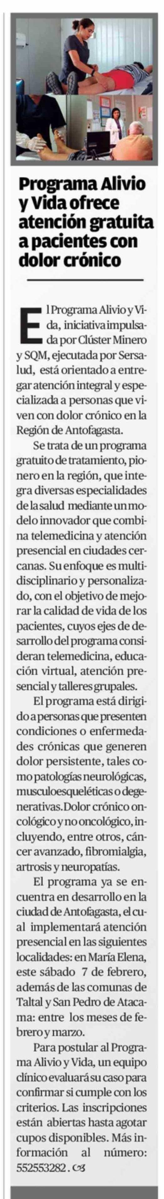 Título: Programa Alivio y Vida ofrece atención gratuita a pacientes con dolor crónico
