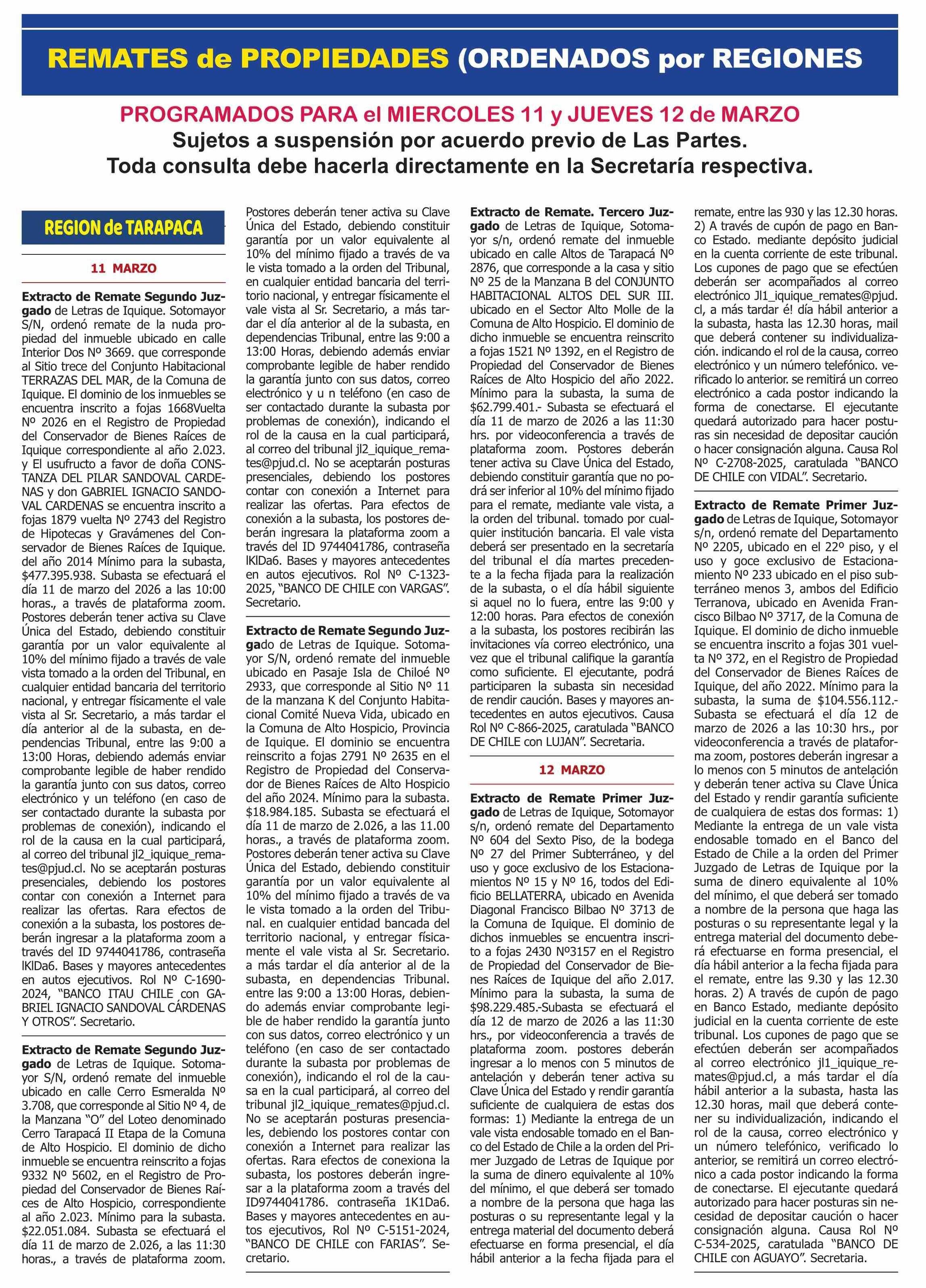 Título: REMATES: REMATES de PROPIEDADES (ORDENADOS por REGIONES
