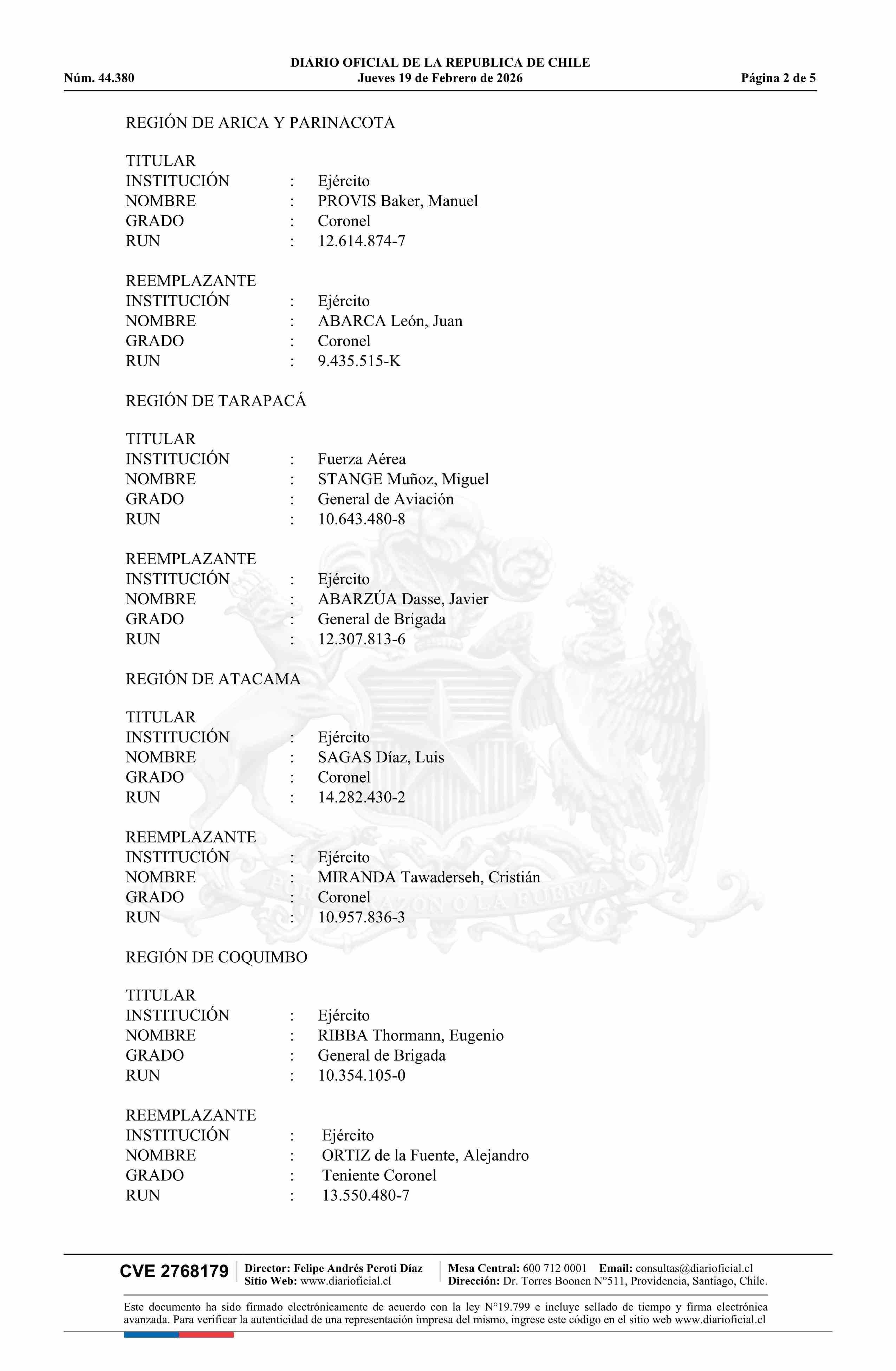 Decreto número 244, de 2025.- Modifica los Jefes de Fuerzas Regionales para la segunda votación presidencial 19-02-2026 Diario Oficial Edición Electrónica |