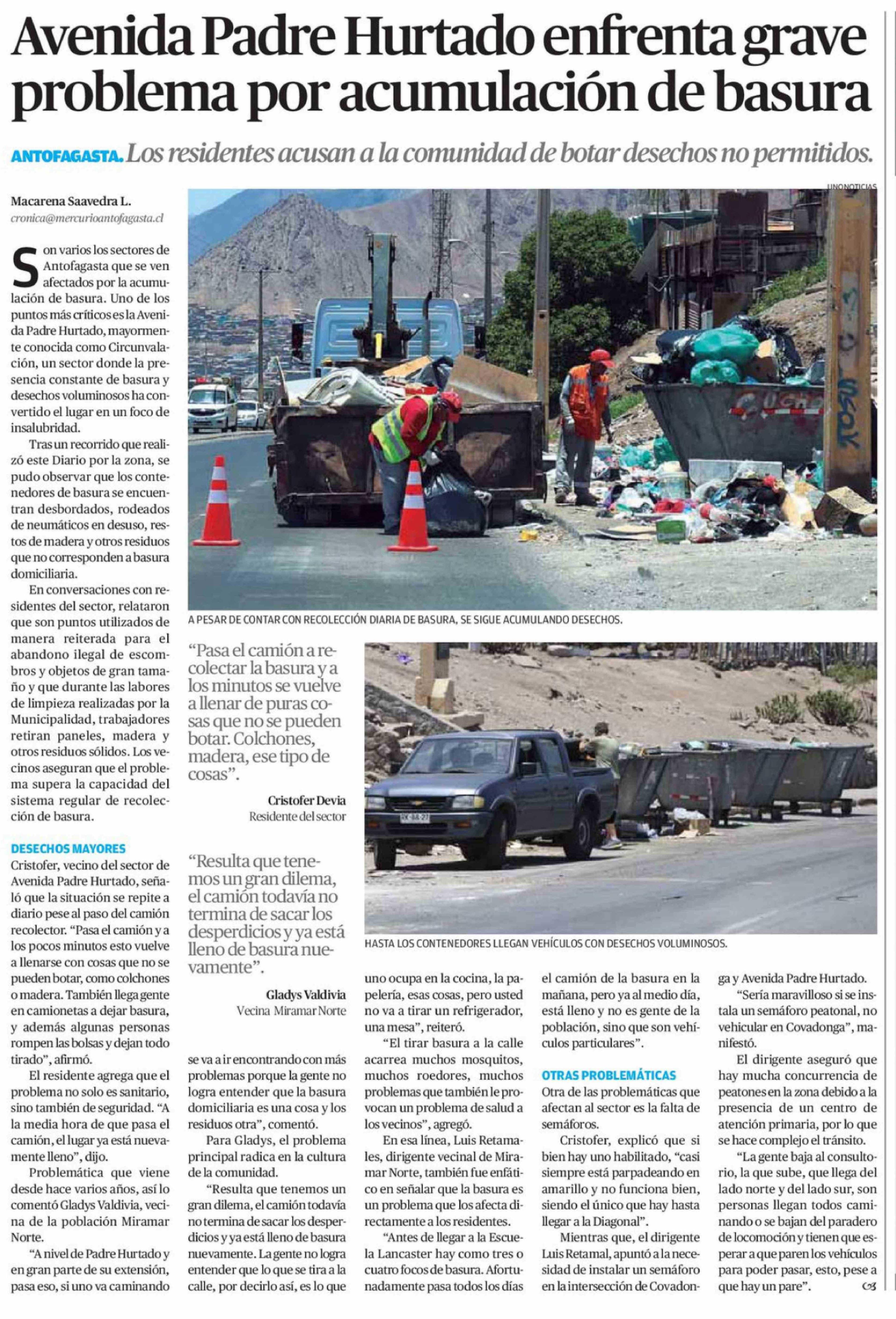 Avenida Padre Hurtado enfrenta grave problema por acumulación de basura 11-02-2026 El Mercurio de Calama |