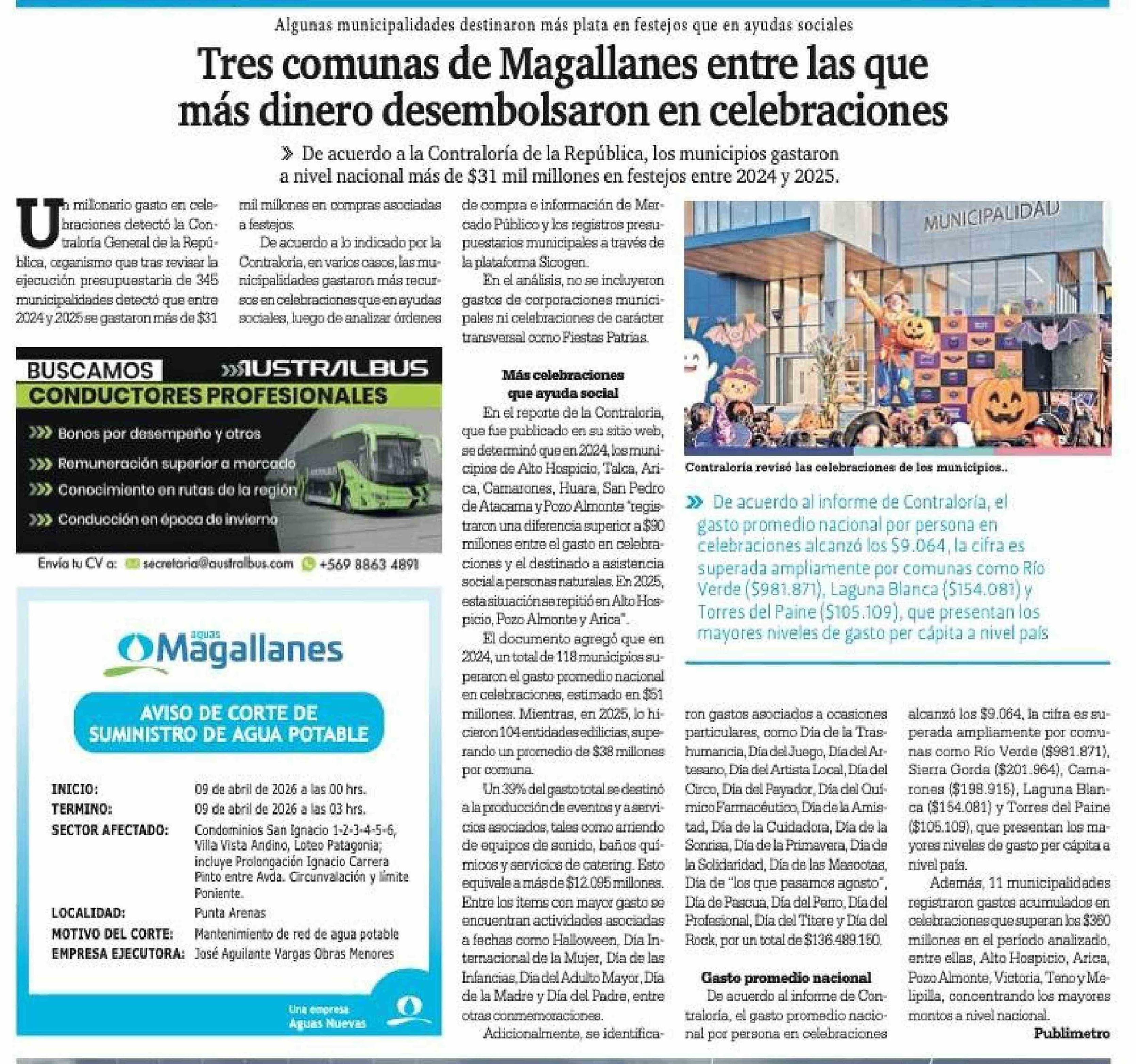 Tres comunas de Magallanes entre las que más dinero desembolsaron en celebraciones 07-04-2026 La Prensa Austral |