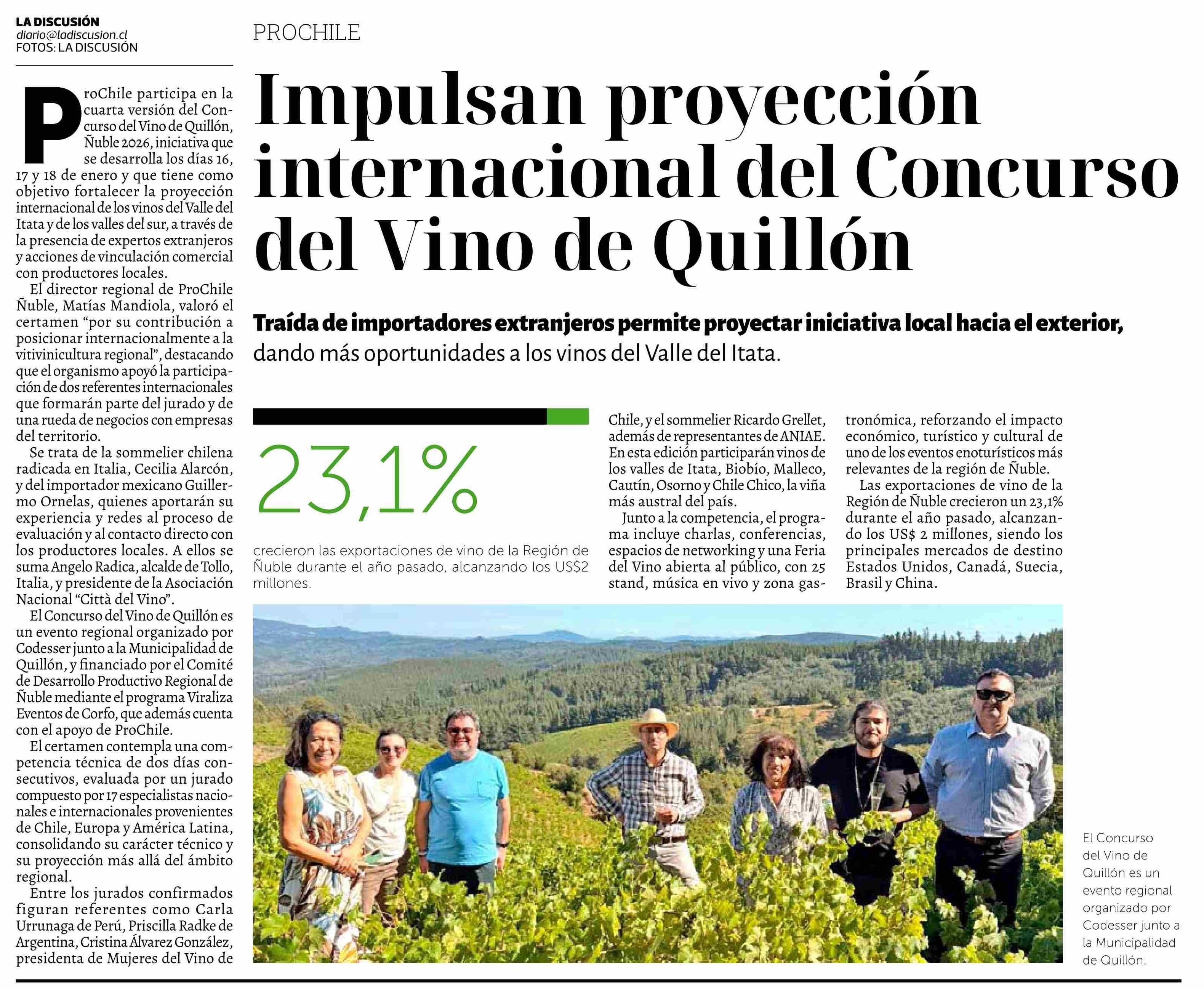Impulsan proyección internacional del Concurso del Vino de Quillón 17-01-2026 La Discusión |