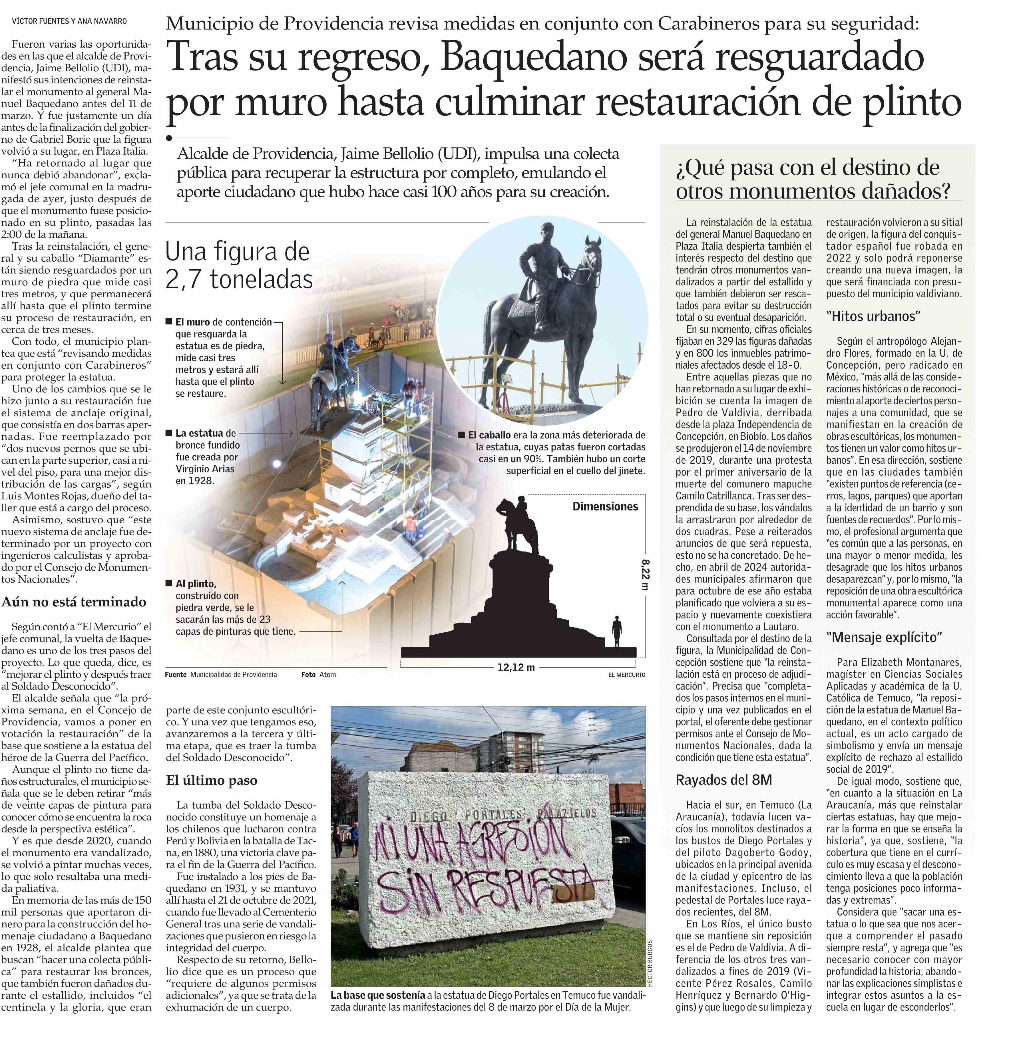 Título: Tras su regreso, Baquedano será resguardado por muro hasta culminar restauración de plinto