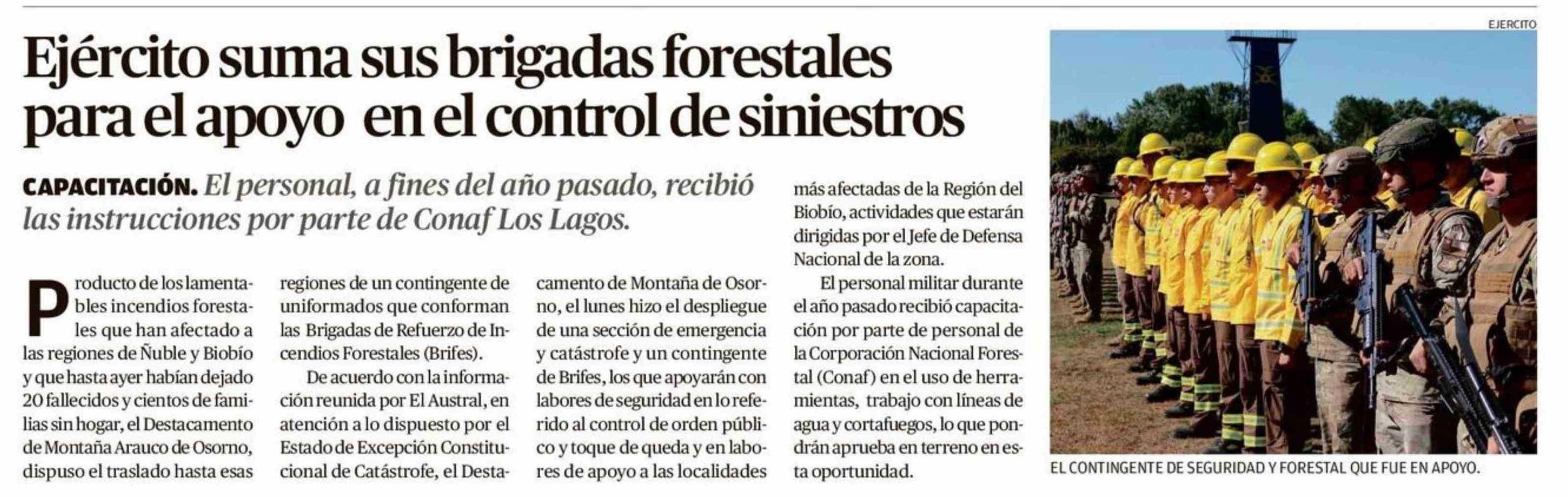 Ejército suma sus brigadas forestales para el apoyo en el control de siniestros 21-01-2026 El Austral de Osorno |