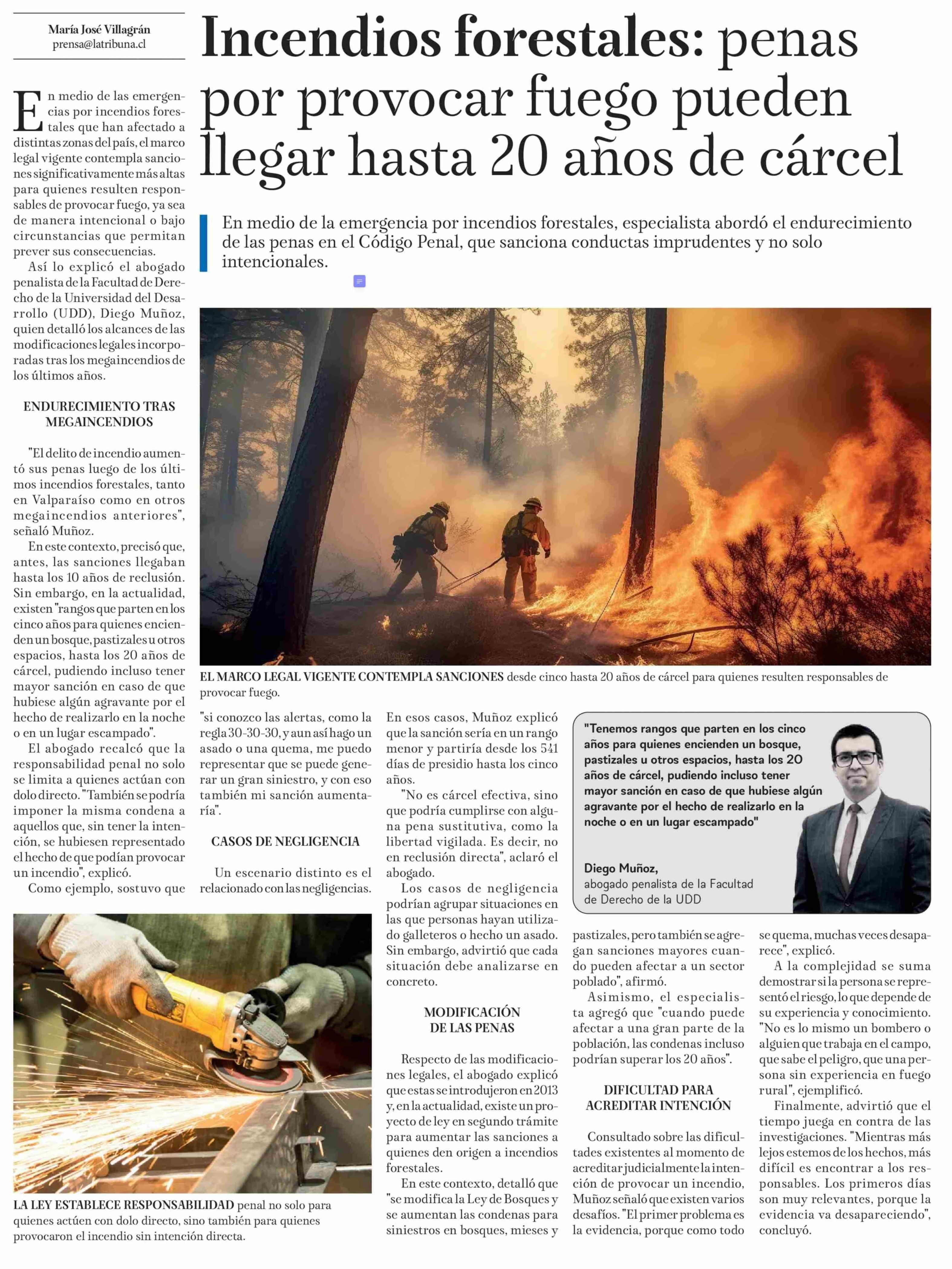 Incendios forestales: penas por provocar fuego pueden llegar hasta 20 años de cárcel 22-01-2026 La Tribuna |