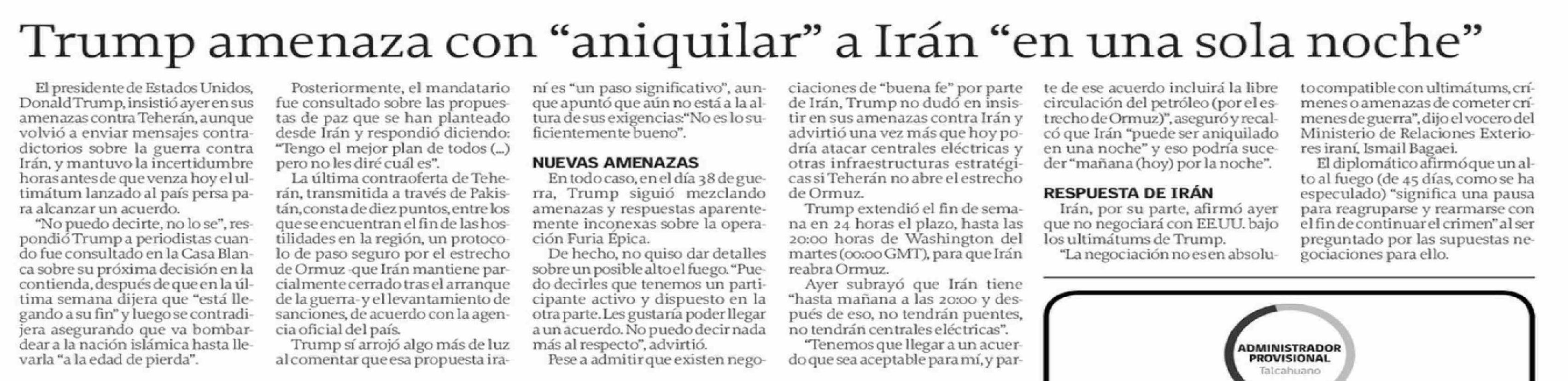 Título: Trump amenaza con "aniquilar" a Irán "en una sola noche"