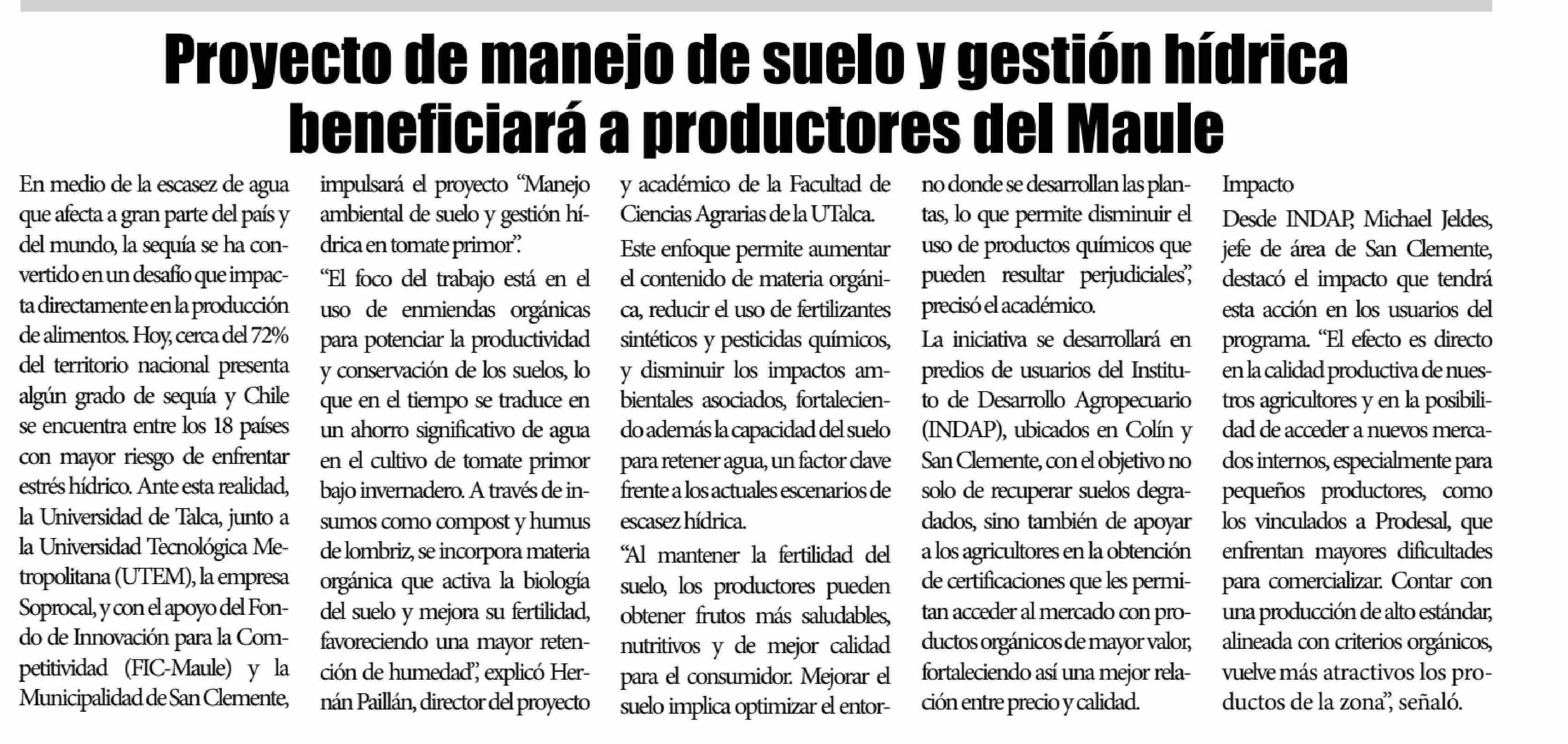 Título: Proyecto de manejo de suelo y gestión hídrica beneficiará a productores del Maule