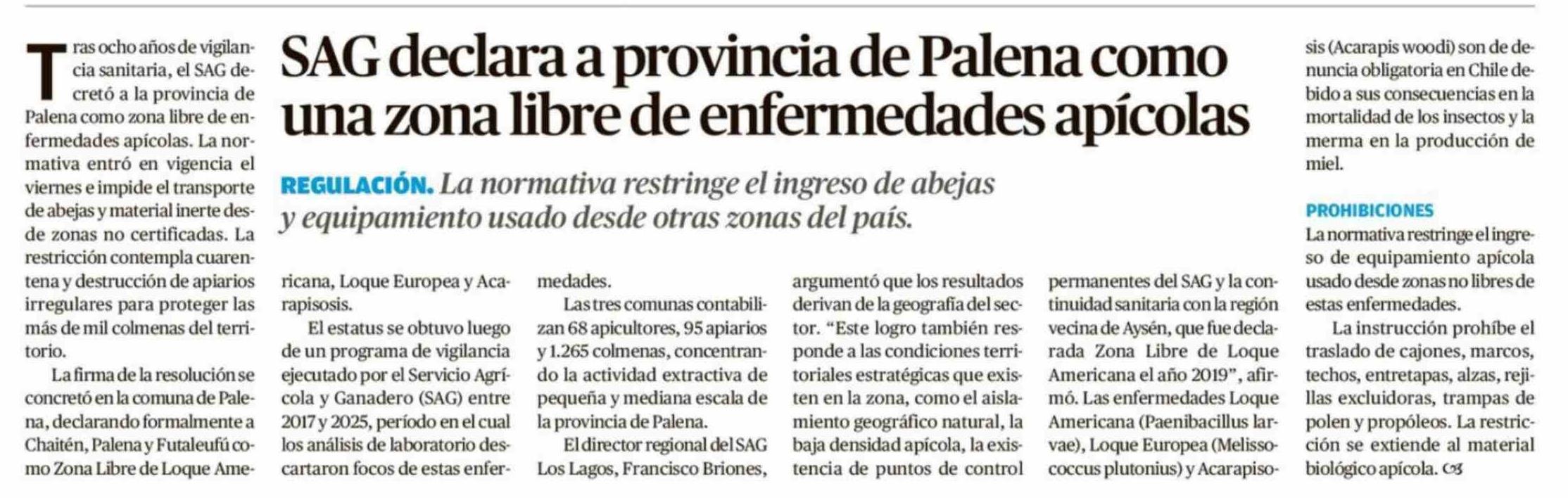 Título: SAG declara a provincia de Palena como una zona libre de enfermedades apícolas