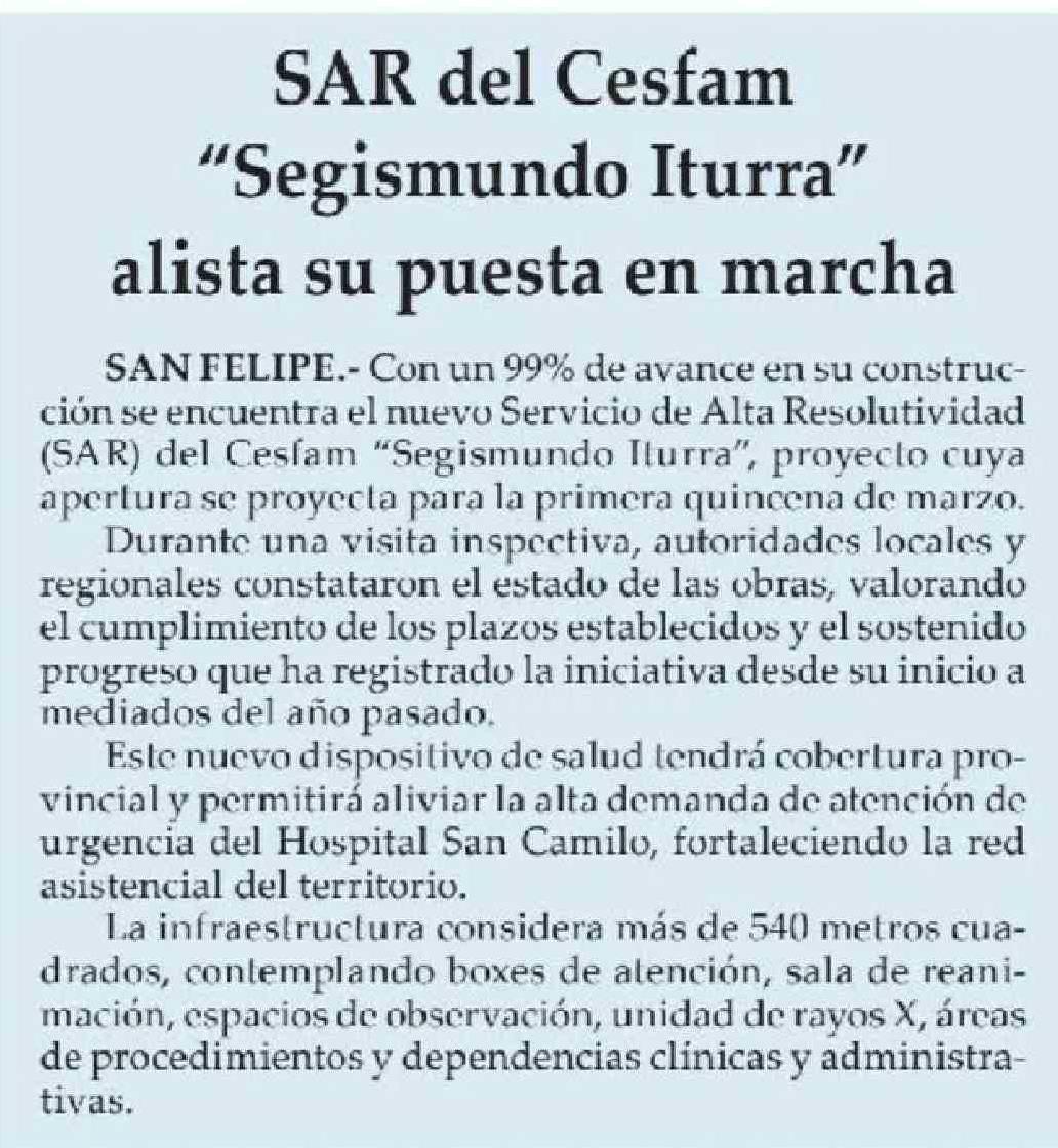 SAR del Cesfam "Segismundo Iturra" alista su puesta en marcha 20-02-2026 El Observador |