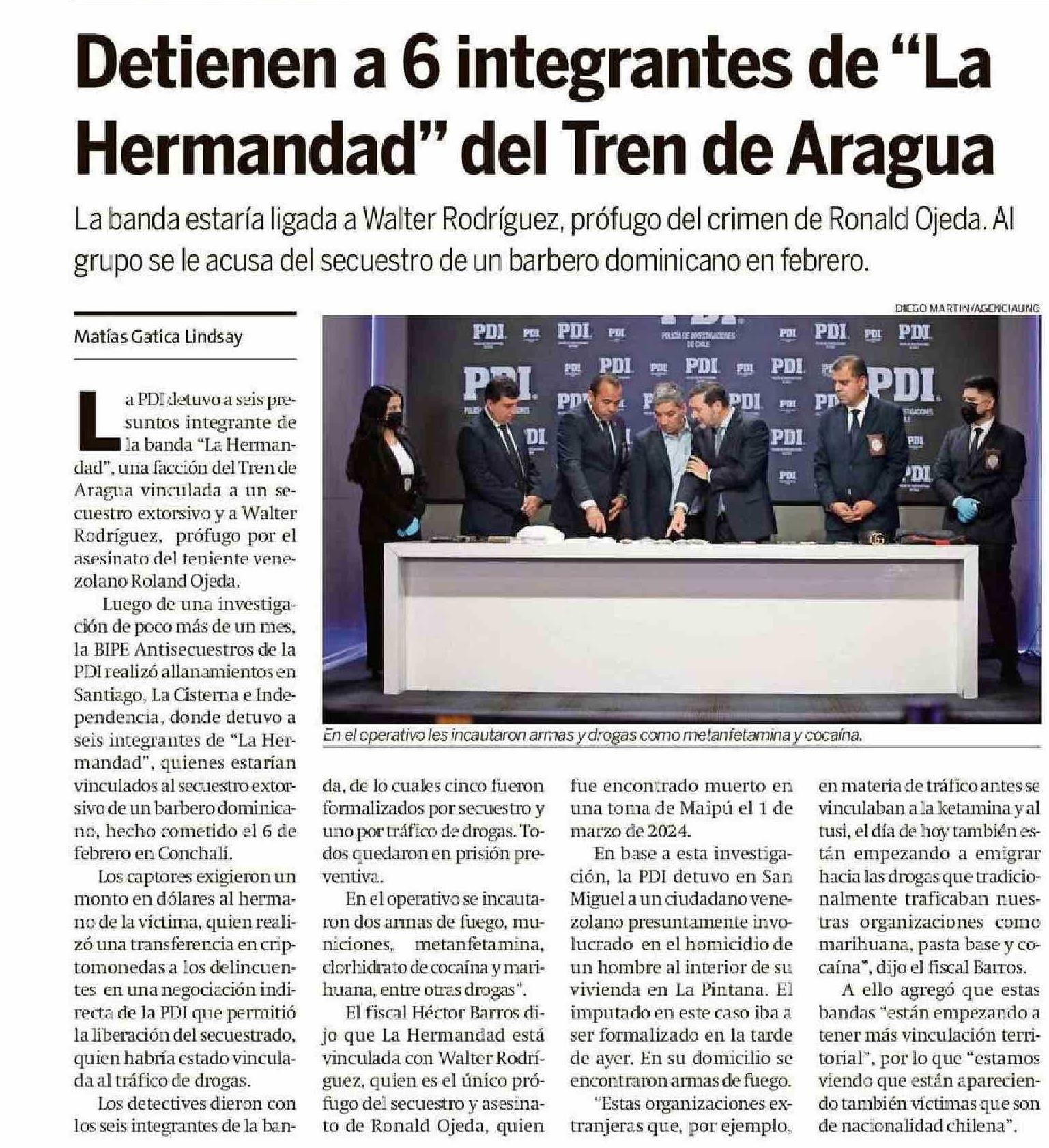 | Título: | Detienen a 6 integrantes de “La Hermandad” del Tren de Aragua |