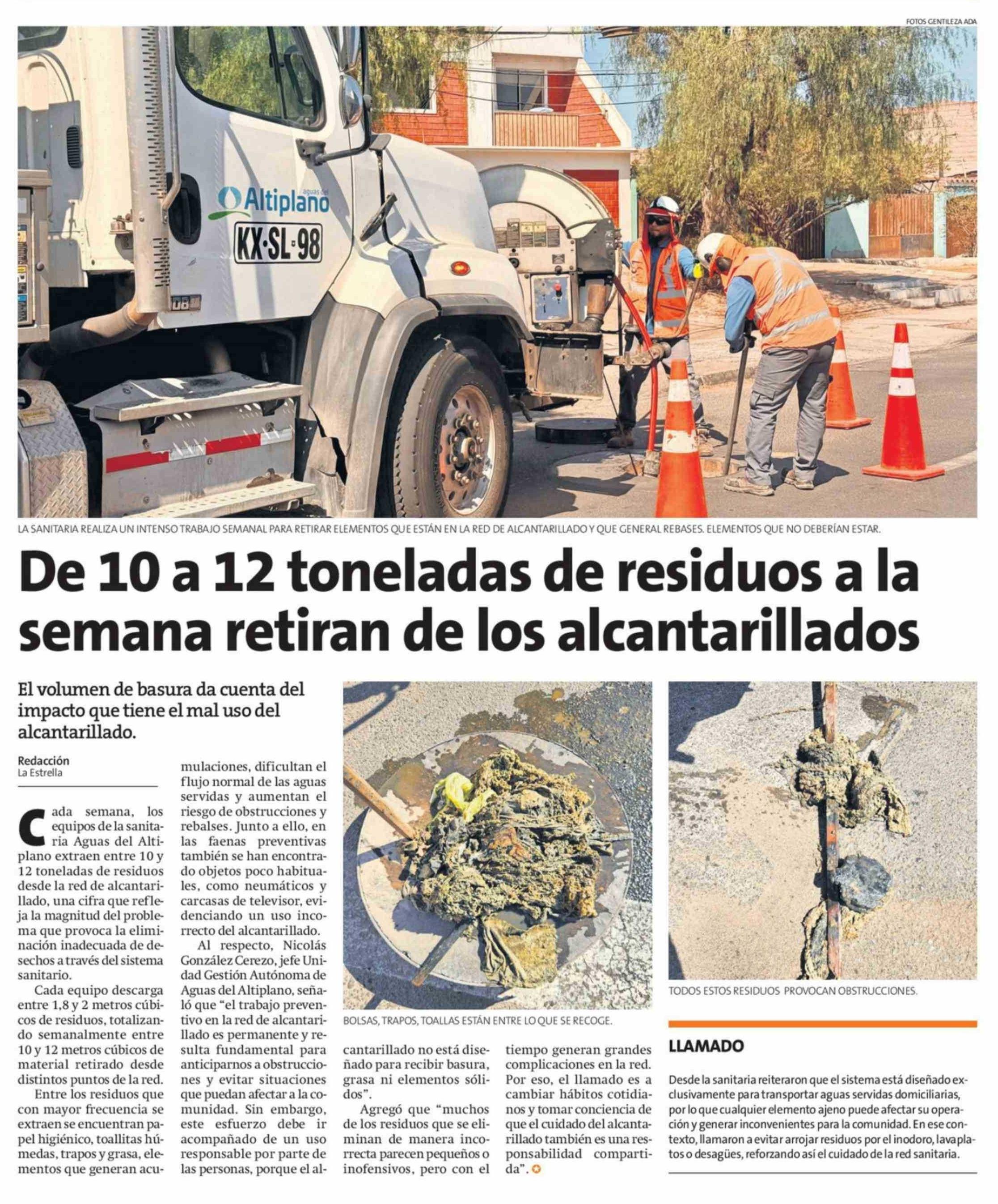 De 10 a 12 toneladas de residuos a la semana retiran de los alcantarillados 14-03-2026 La Estrella de Arica |