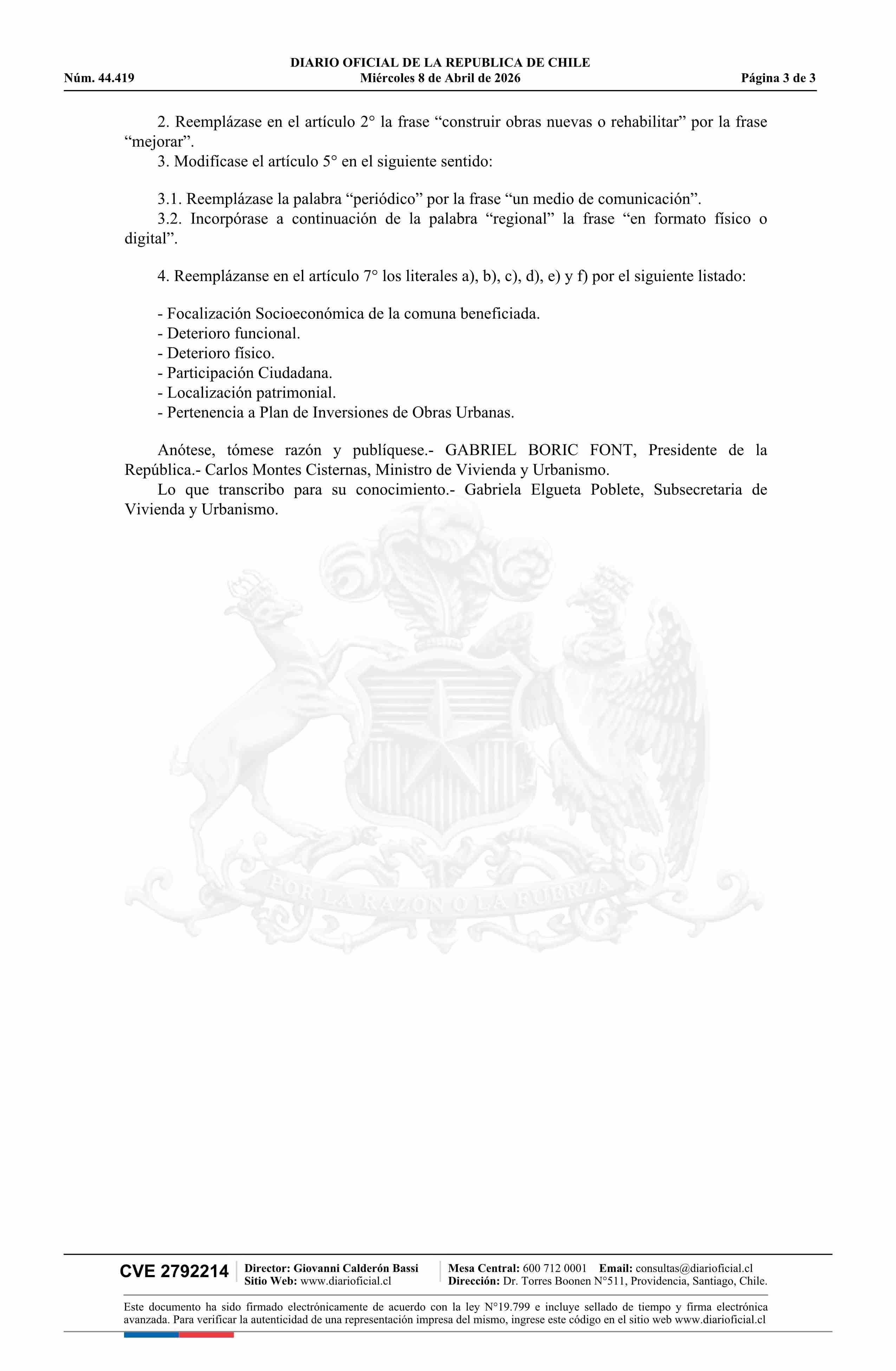 Fuente: Diario Oficial Edición Electrónica (Diario Oficial de Chile - 1 Normas Generales) Página(s): 14-16