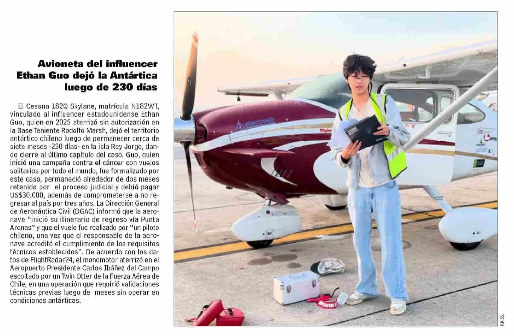 Título: Avioneta del influencer Ethan Guo dejó la Antártica luego de 230 días
