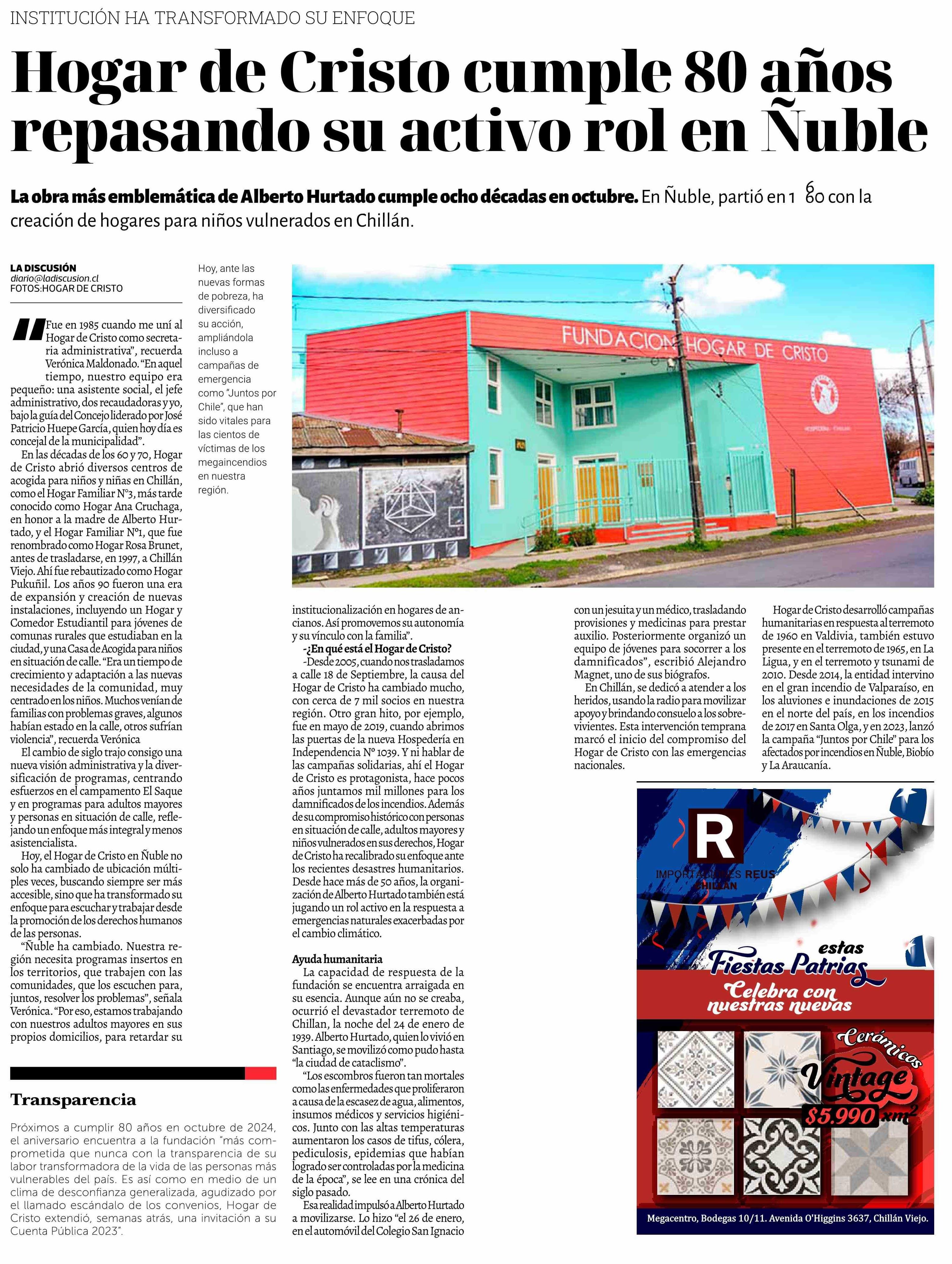 Hogar de Cristo cumple 80 años repasando su activo rol en Ñuble 19-09-2024 La Discusión |