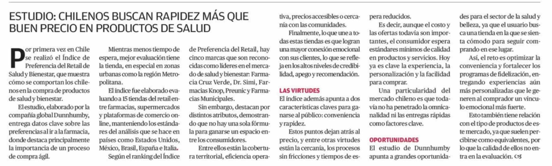 | Título: | ESTUDIO: CHILENOS BUSCAN RAPIDEZ MÁS QUE BUEN PRECIO EN PRODUCTOS DE SALUD |