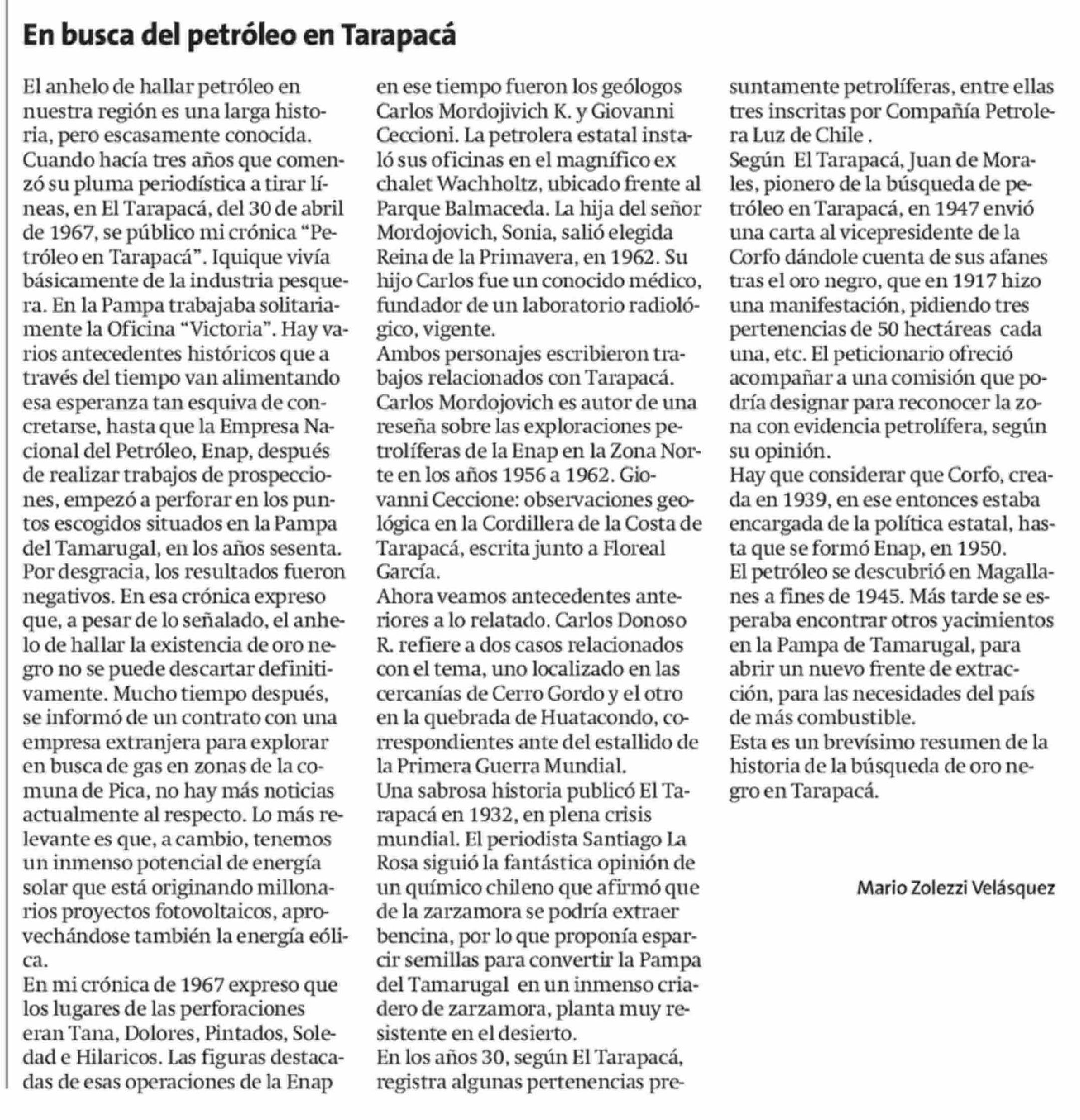 | Título: | Columnas de Opinión: En busca del petróleo en Tarapacá |