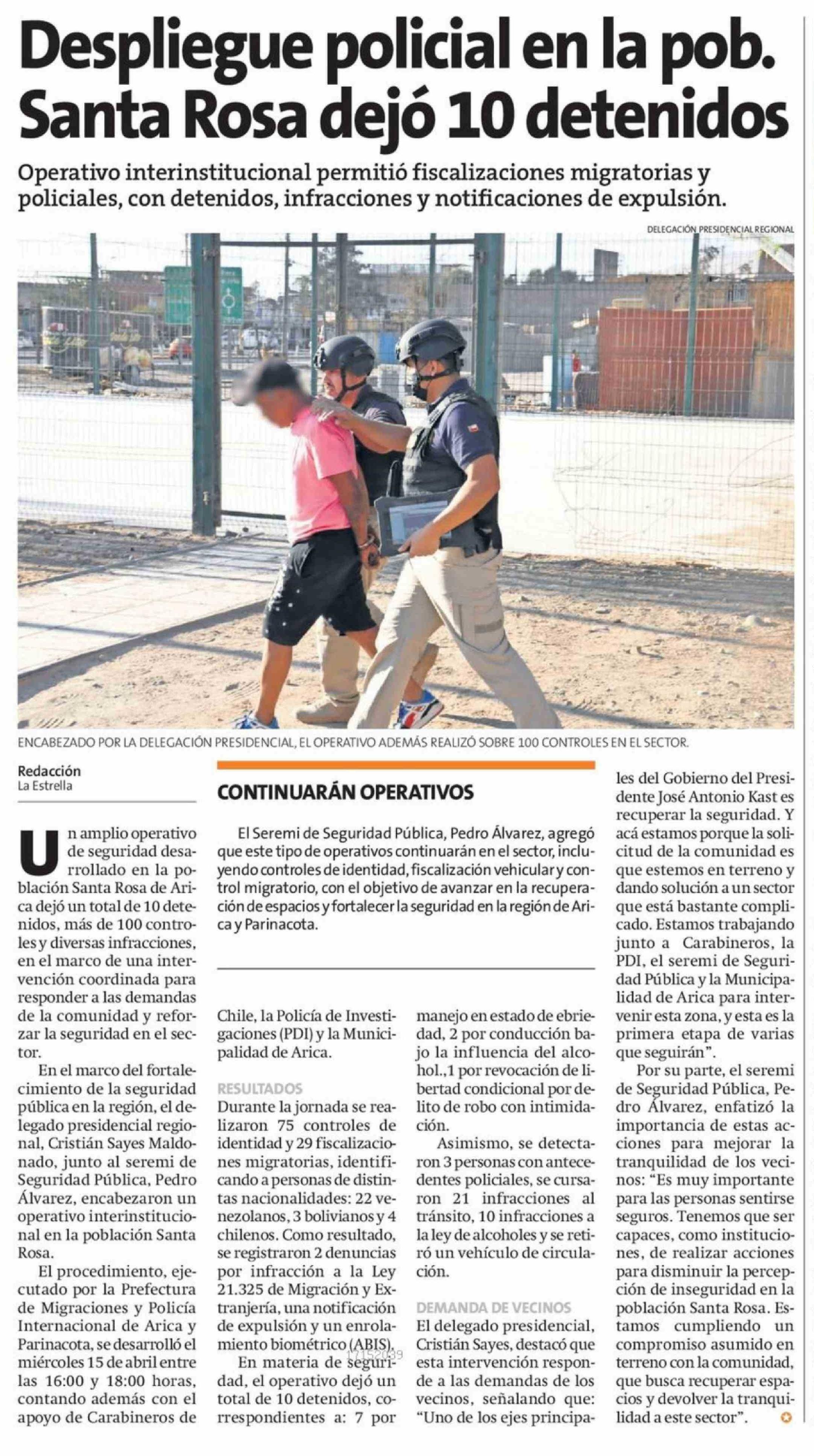 Despliegue policial en la pob. Santa Rosa dejó 10 detenidos 17-04-2026 La Estrella de Arica |