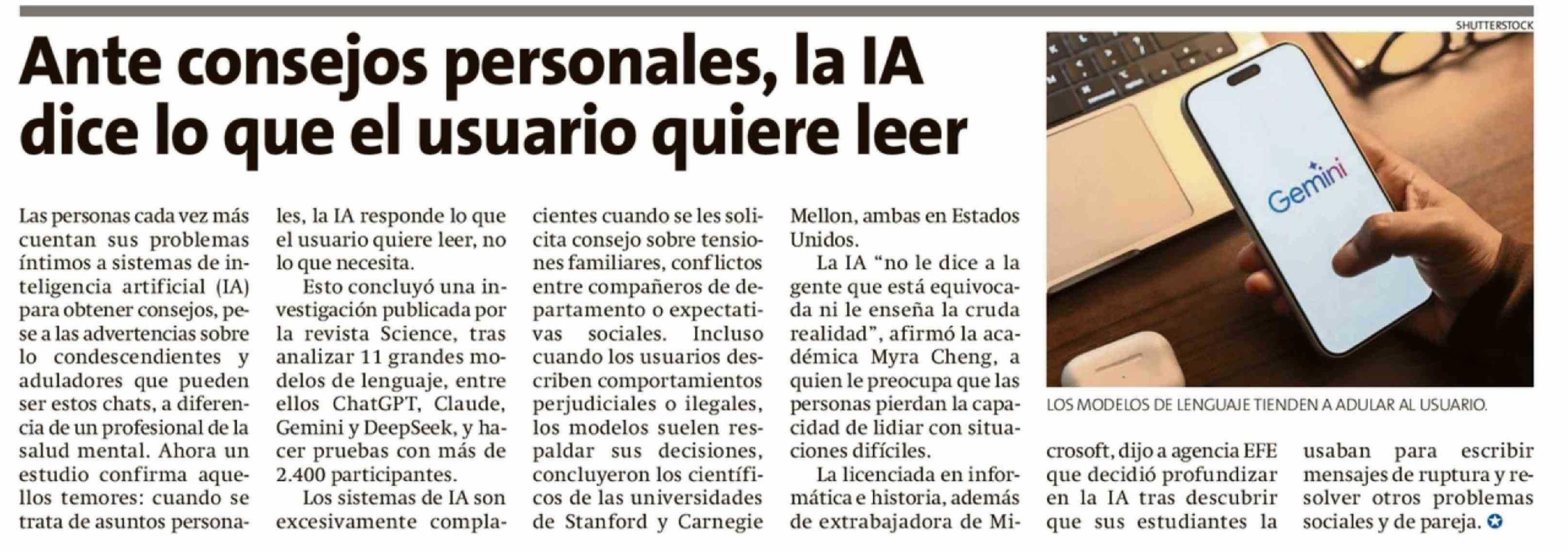 Título: Ante consejos personales, la IA dice lo que el usuario quiere leer