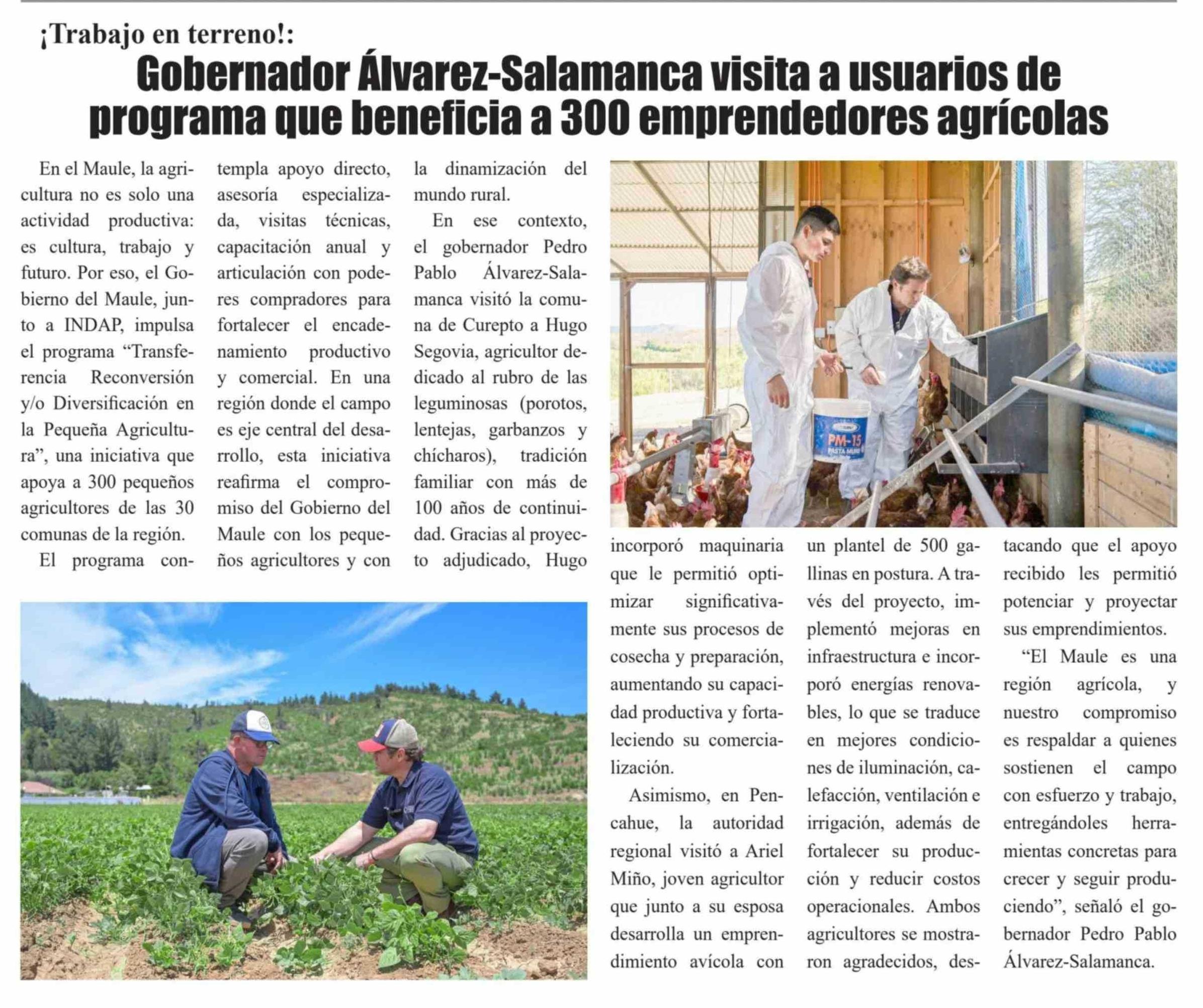 Título: ¡Trabajo en terreno !: Gobernador Álvarez-Salamanca visita a usuarios de programa que beneficia a 300 emprendedores agrícolas